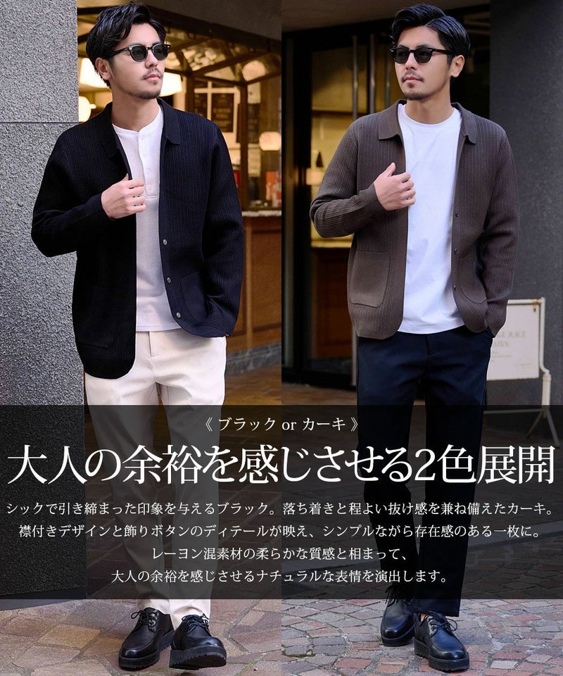 カラーはシックで引き締まった印象を与えるブラックと落ち着きと程よい抜け感を兼ね備えたカーキの2色展開。