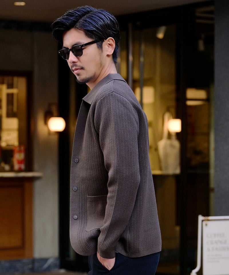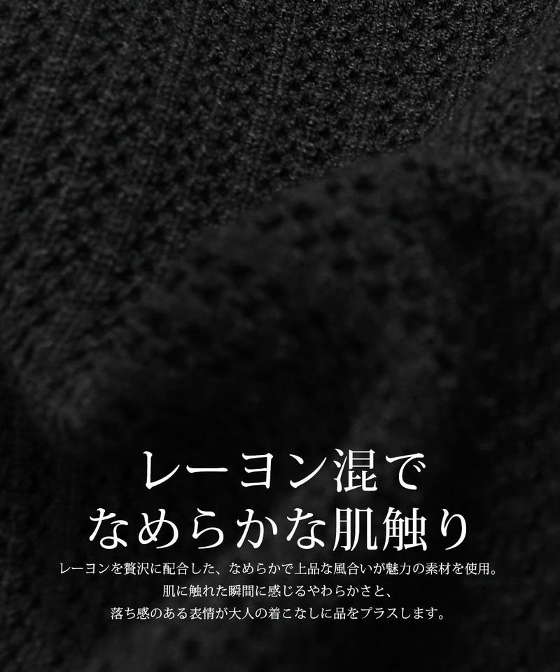 シンプルながらも表情のある編み地が、羽織るだけで大人の雰囲気を演出します。