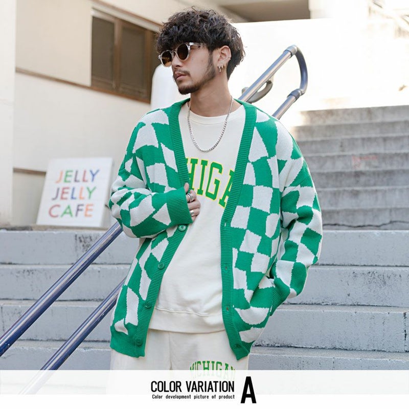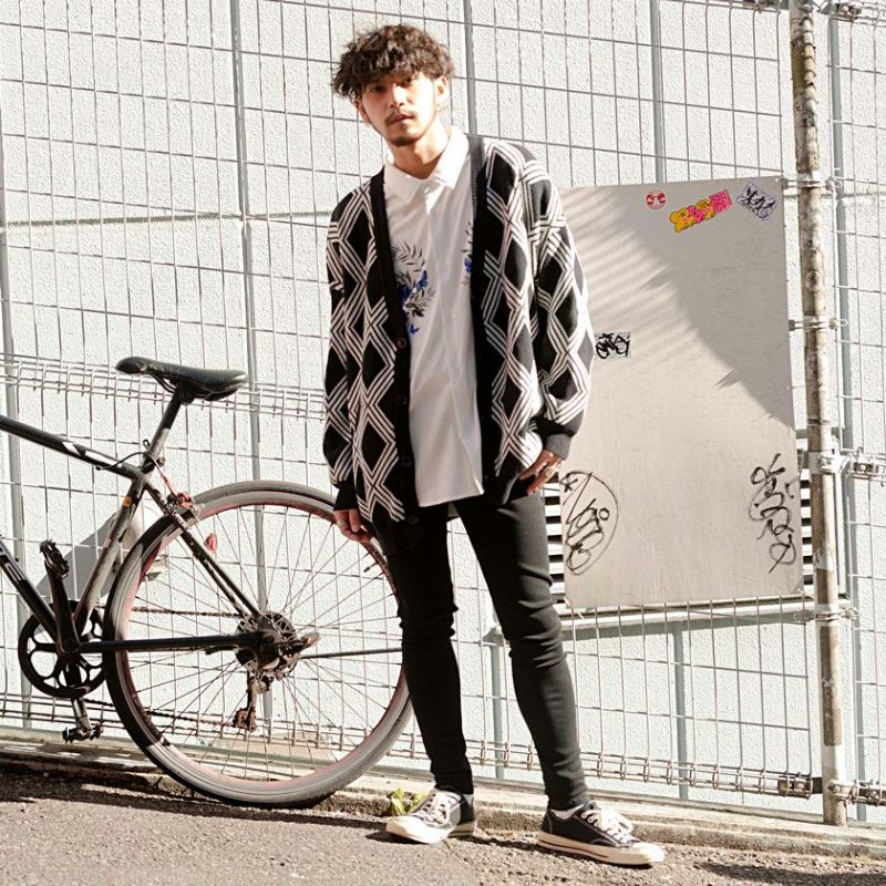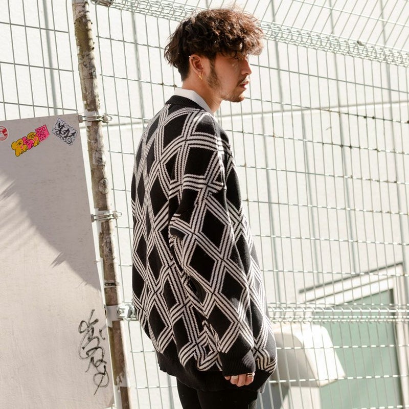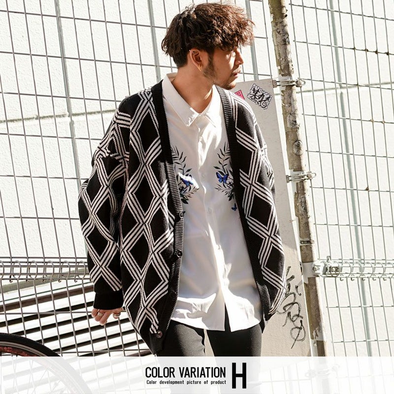 総柄のビッグシルエットカーディガン。