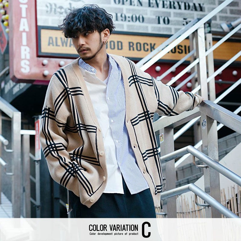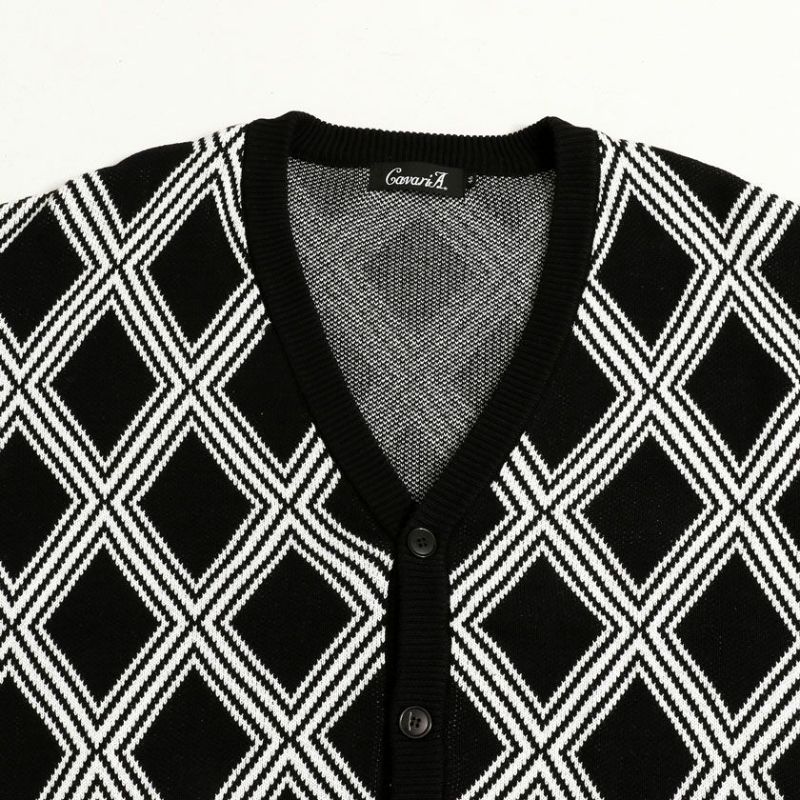 ビターなカジュアルスタイルにぴったりなカーディガン。季節の変わり目に大活躍! 【SALE/セール】CavariA(キャバリア)総柄ニットカーディガン/全10色