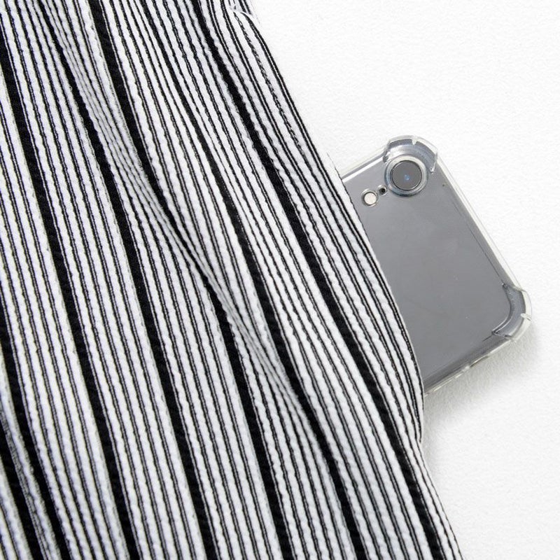 しっかりとした生地感とさりげないストライプ柄がシャツやカットソーに合わせるだけで雰囲気を変えてくれます。