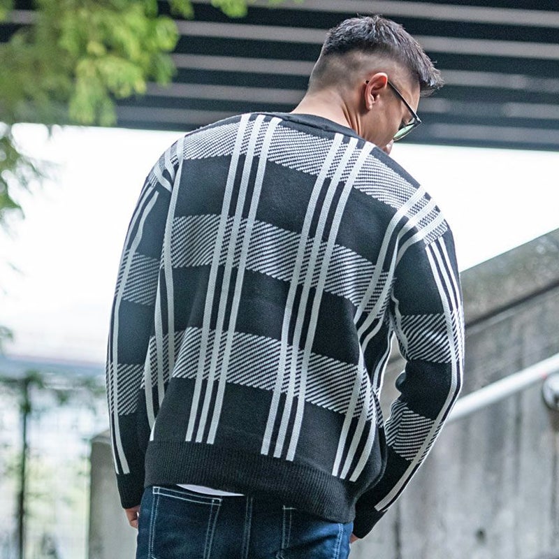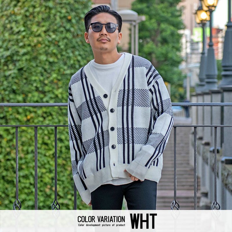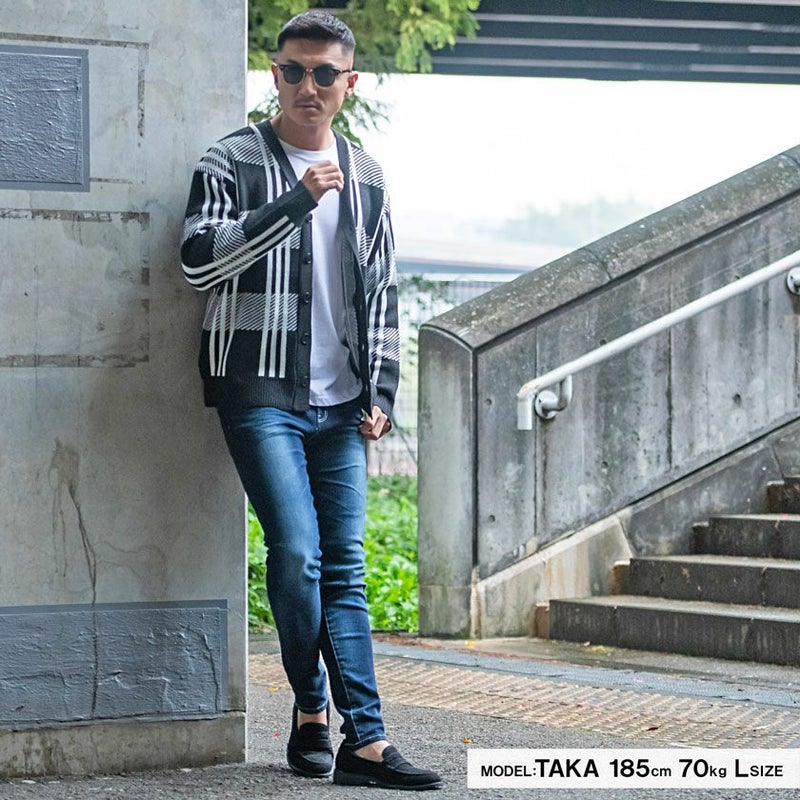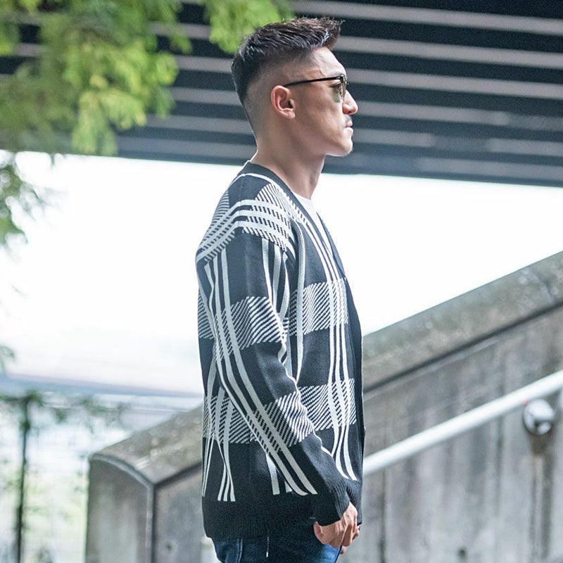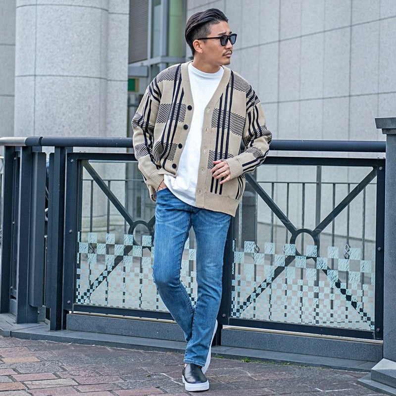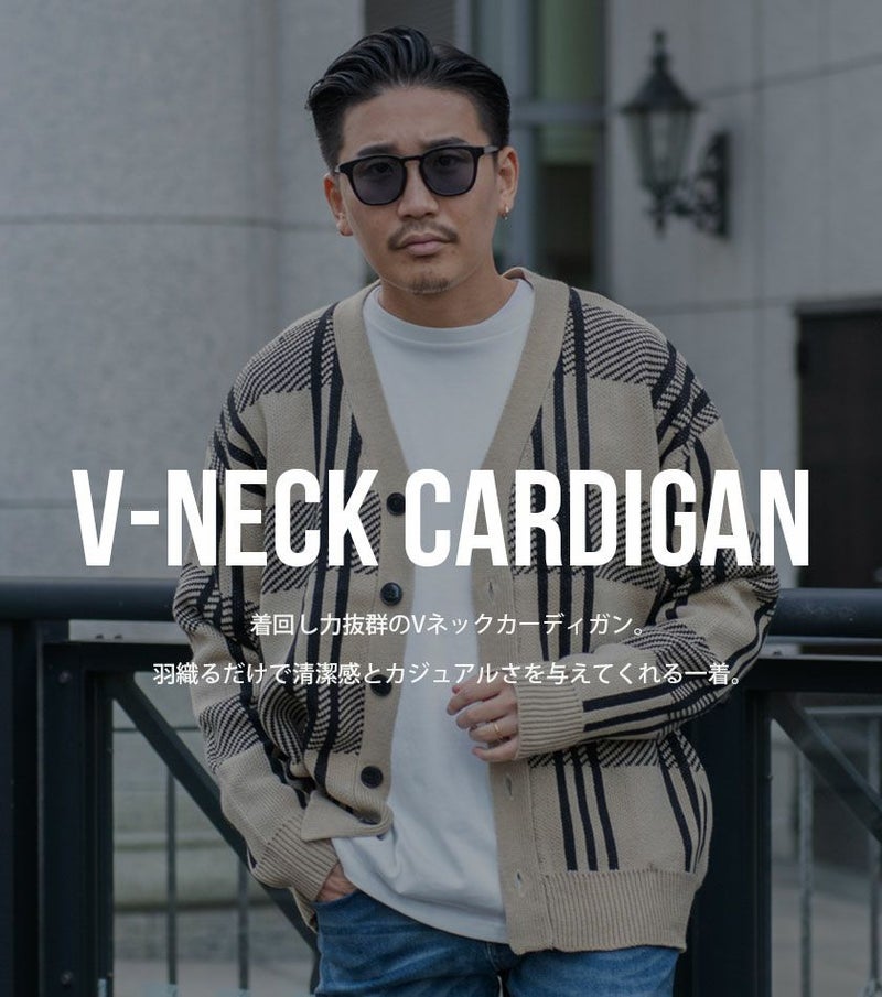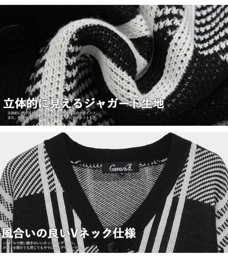 ジャガードチェック柄が目を惹くVネックカーディガン。