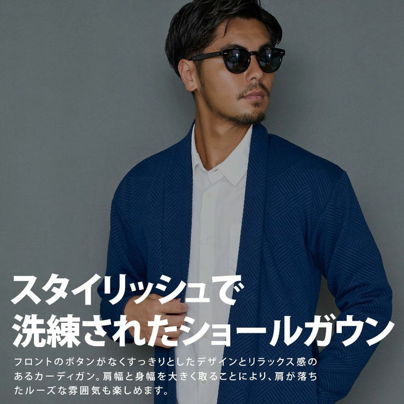 フロントのボタンがなくすっきりとしたデザインとリラックス感のあるカーディガン。