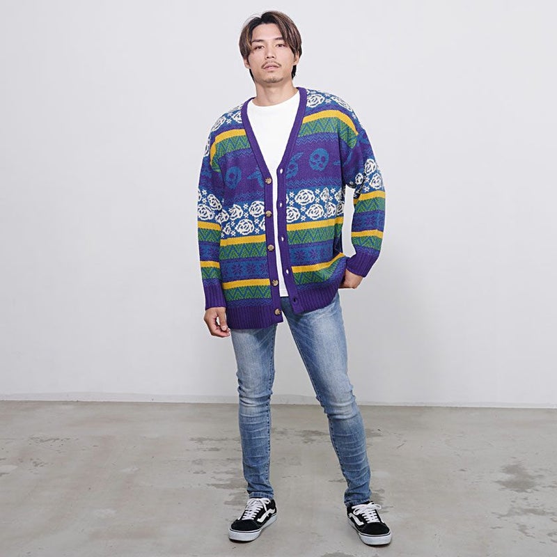 メキシコの伝統的なカラベラをモチーフにしたカーディガンで、 ほかにはない個性的な1着です。