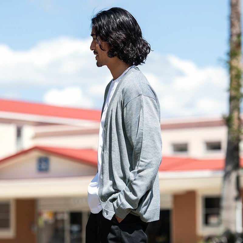 柔らかな肌触りで程良い薄さでしっかりとした生地感に仕上がったカーディガン。
