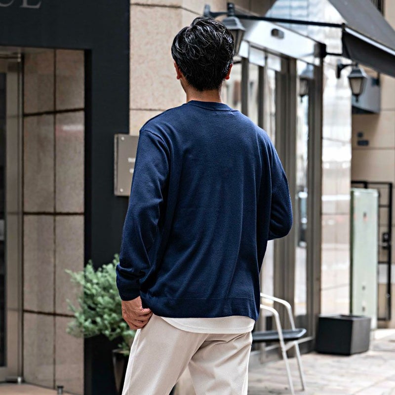 Tシャツの上からはもちろん、シャツの上から着ても上品に着こなせるアイテムです。