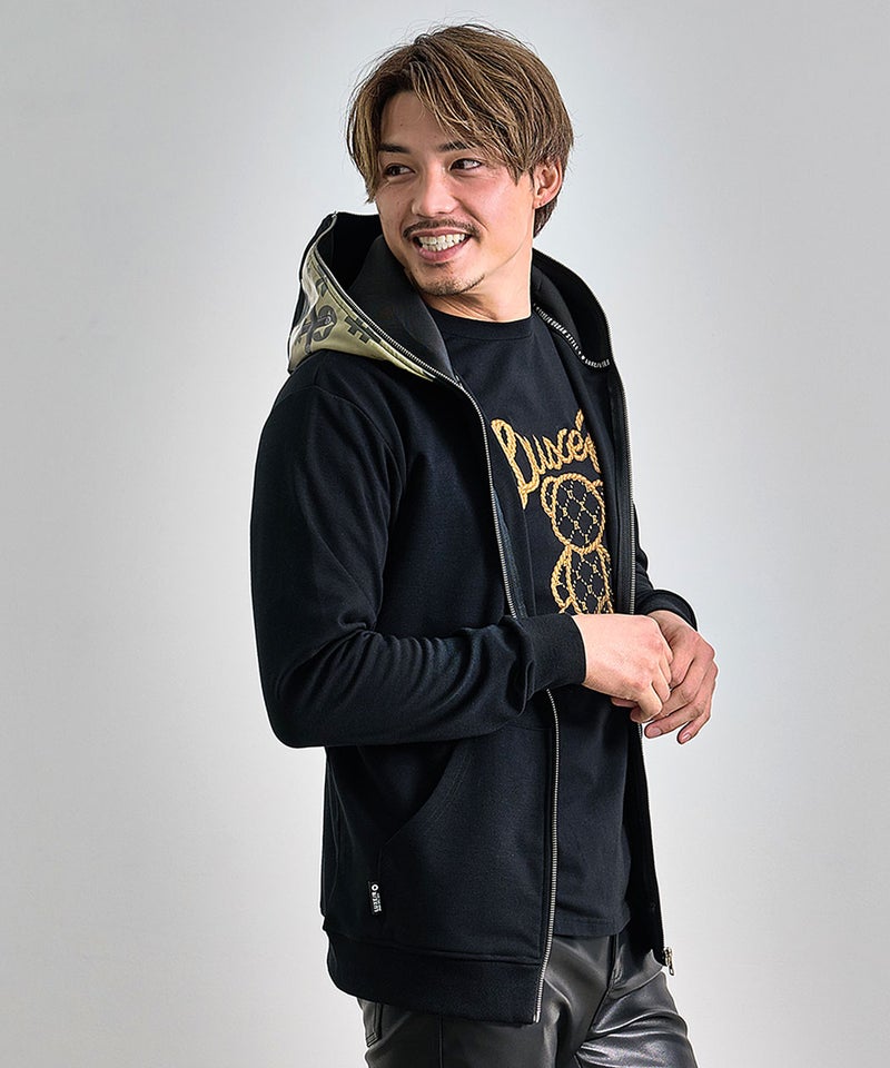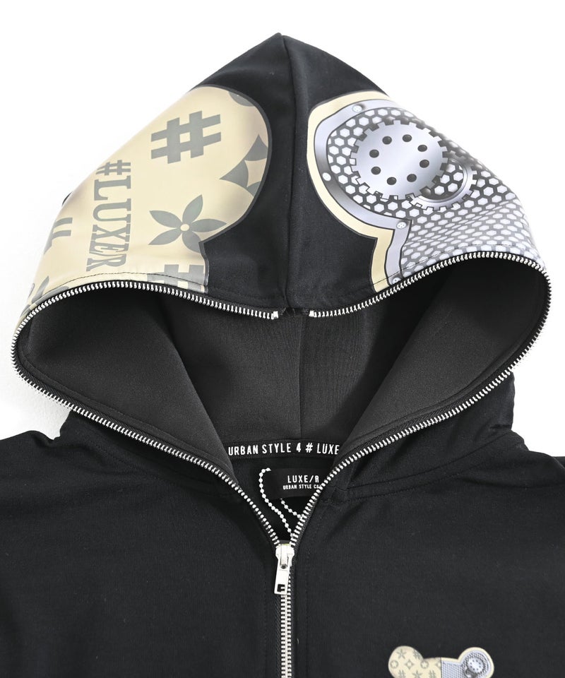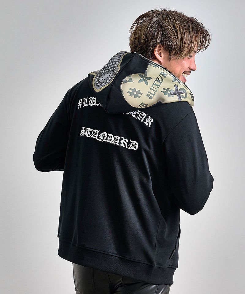 フード部分にもビッグプリント&フルジップを施し、360度抜かりのないインパクト抜群の仕上がりです。