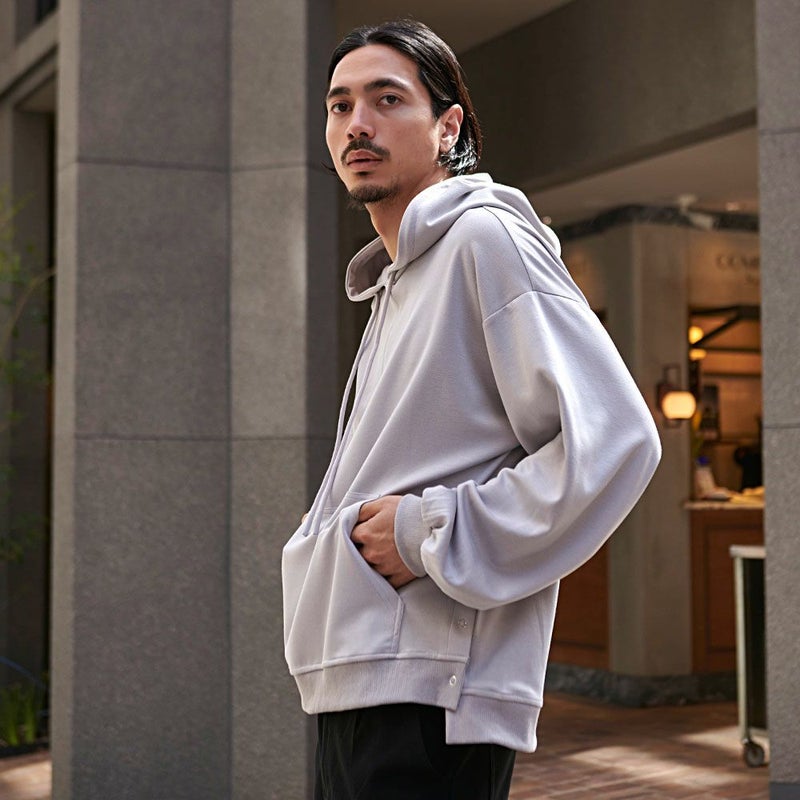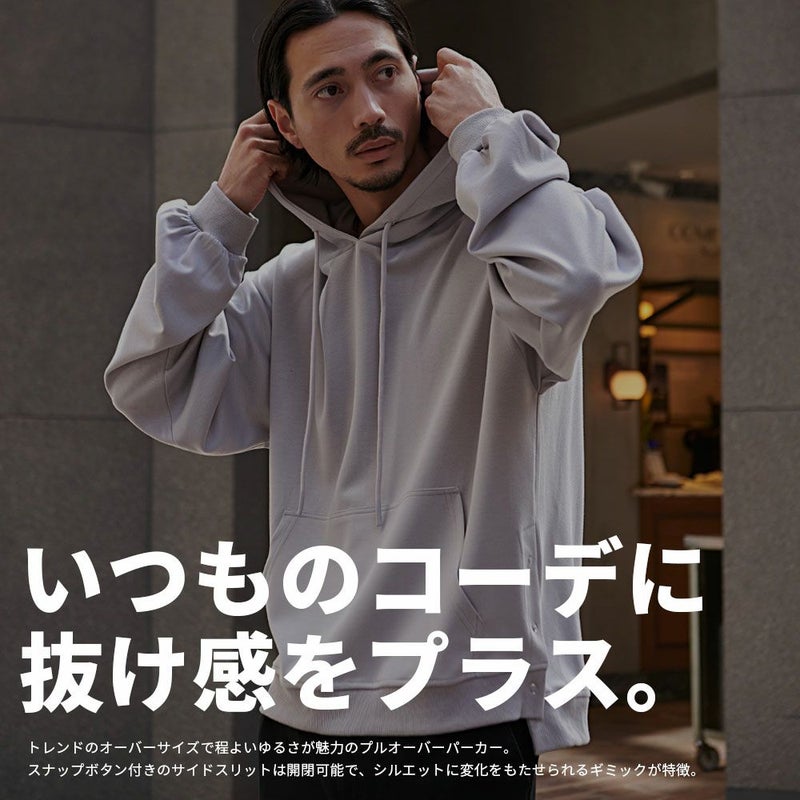 トレンドのオーバーサイズで程よいゆるさが魅力のプルオーバーパーカー。