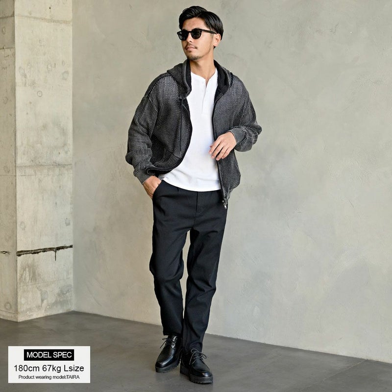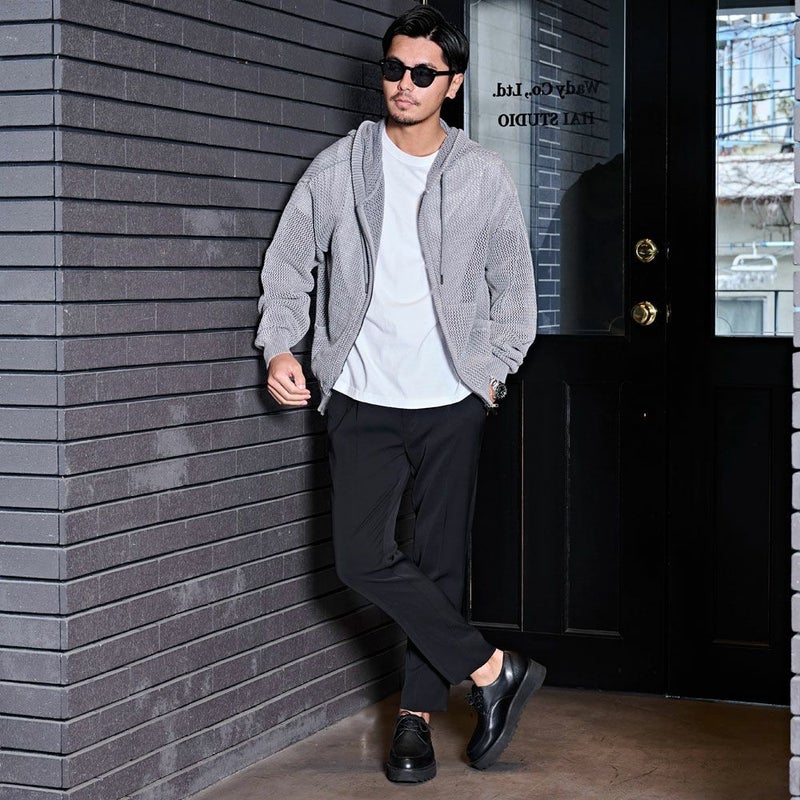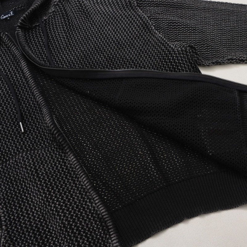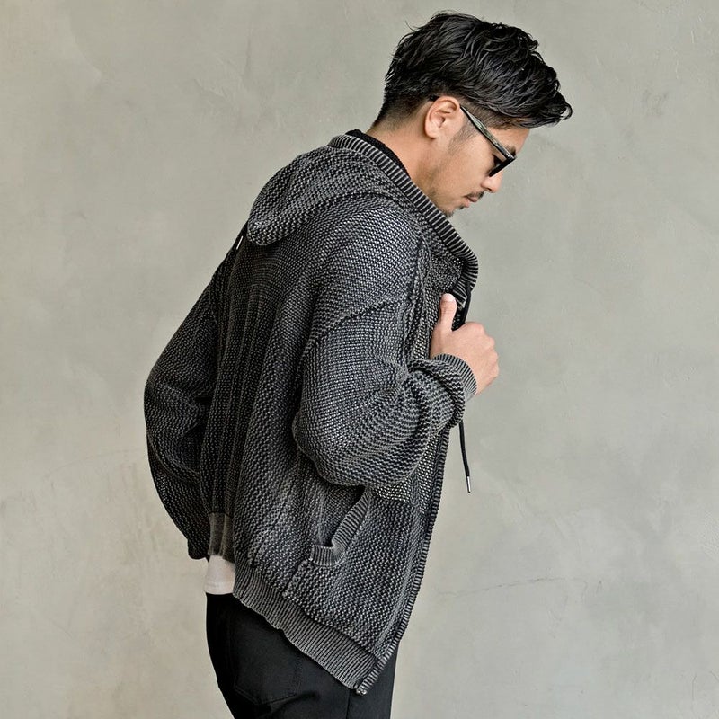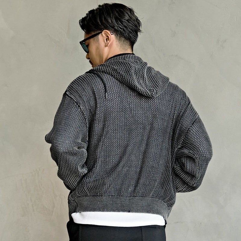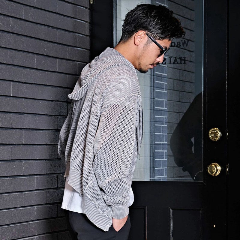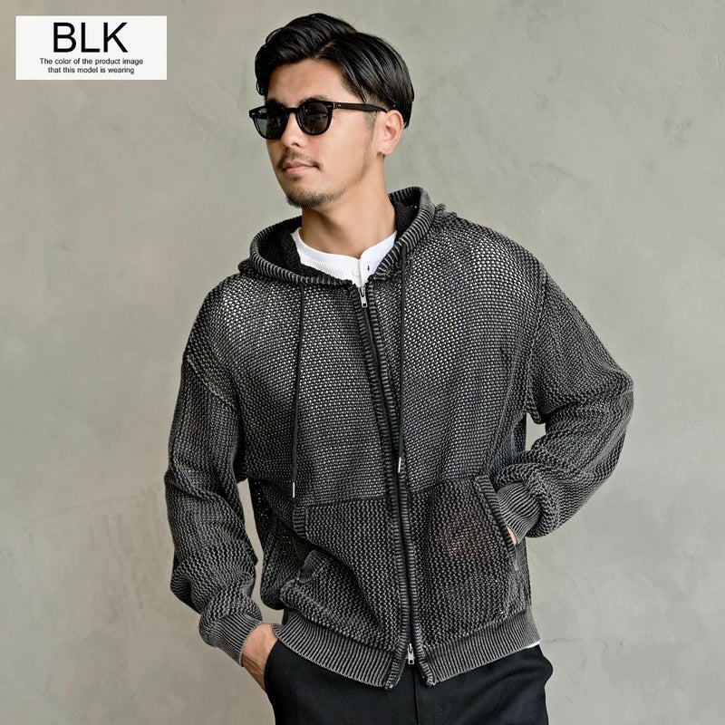 メッシュ編みを採用したニットZIPパーカー。