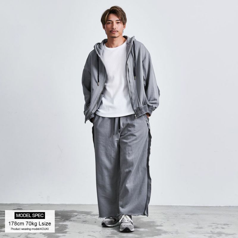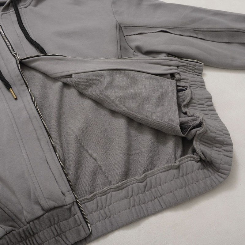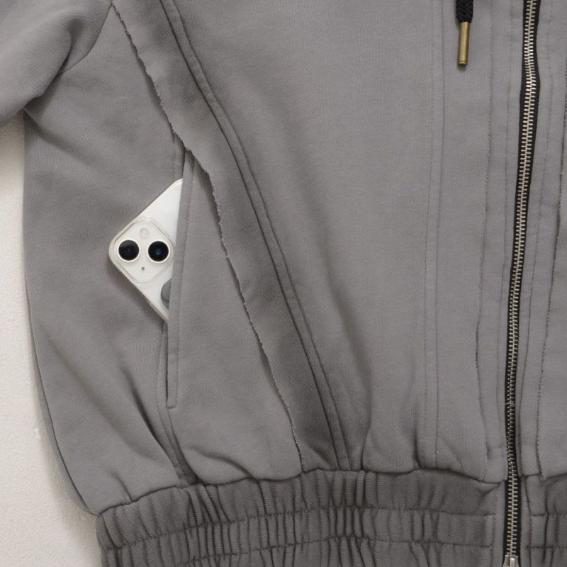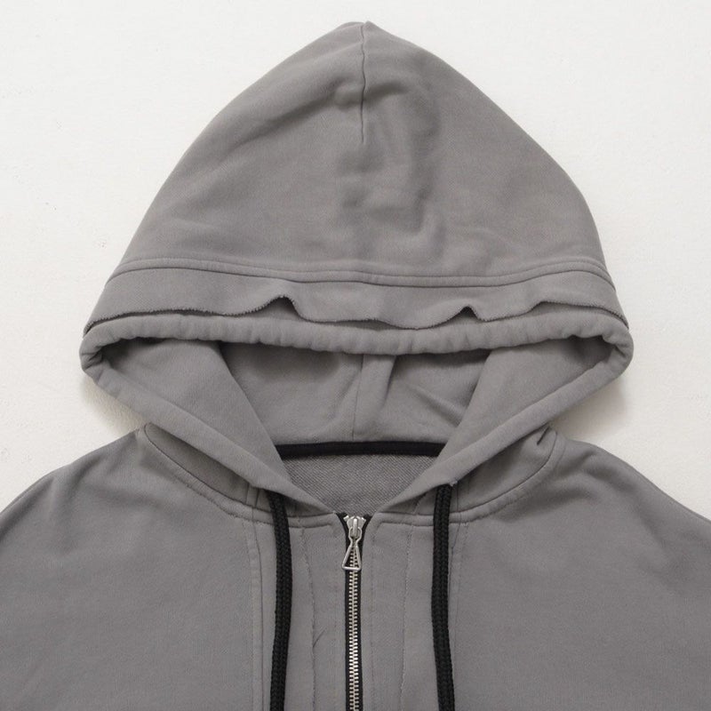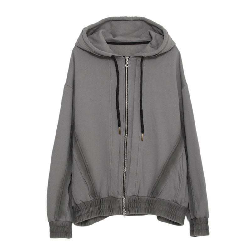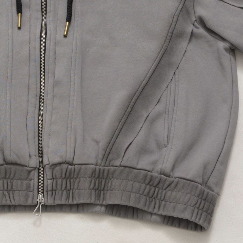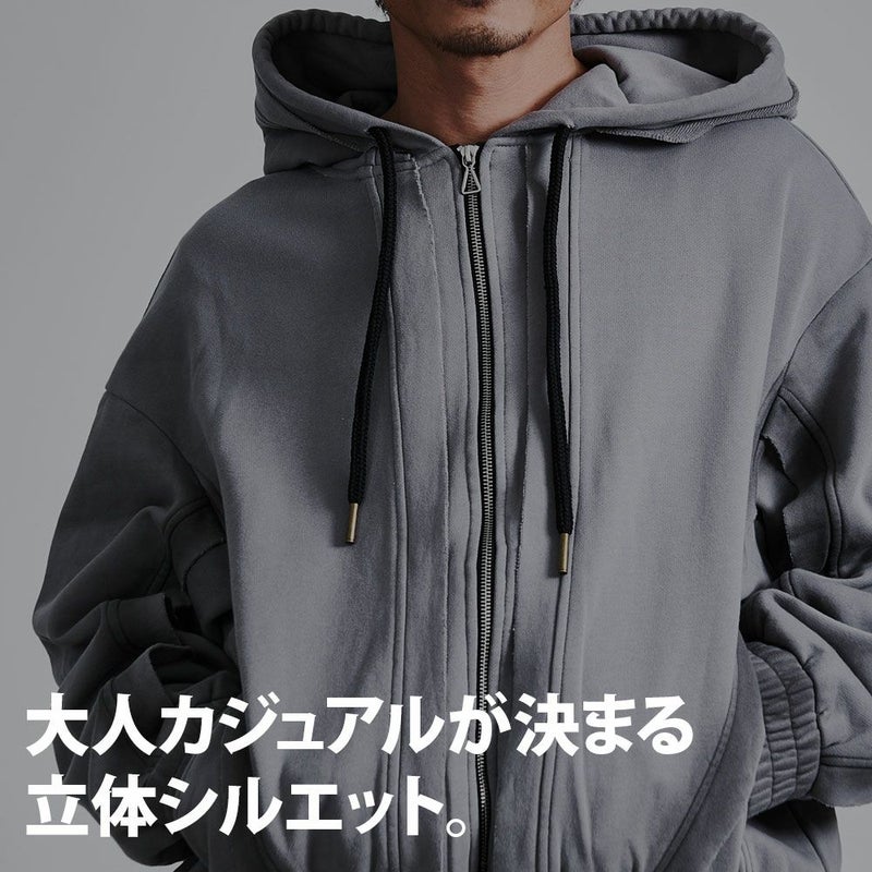 日常のスタイルにこなれた表情を添える、切りっぱなしデザインが魅力のジップアップパーカーです。