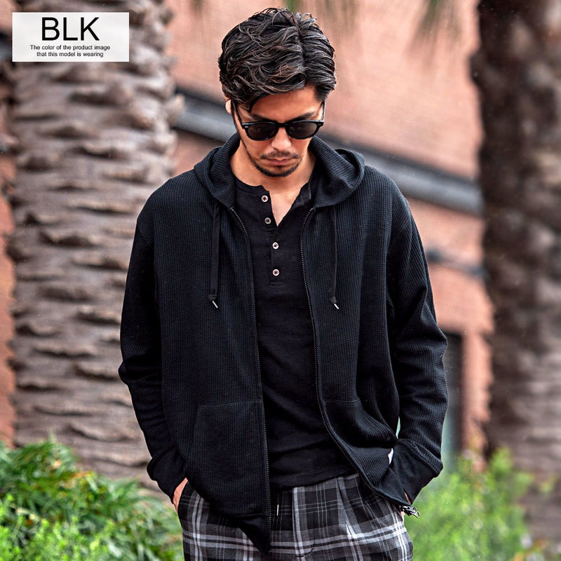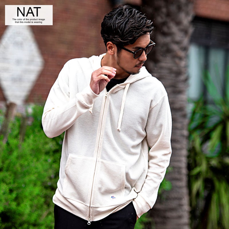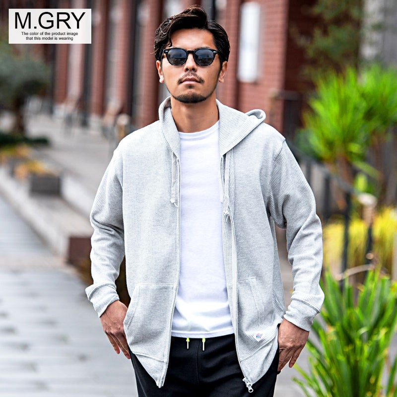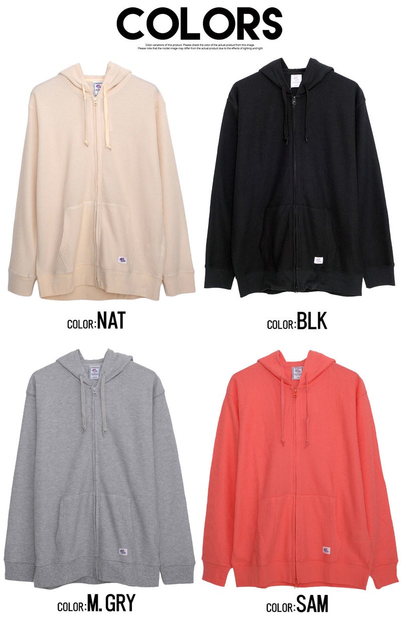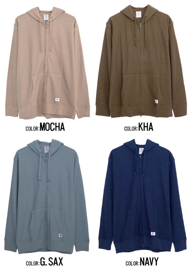 パーカー メンズ ワッフル サーマル ジップアップパーカー 無地 シンプル JEMORGAN LONG JOHNS ジェーイーモーガンロングジョーンズ ホワイト ブラック グレー JEMORGAN LONG JOHNS(ジェーイーモーガンロングジョーンズ)CVCワッフルフルジップ長袖パーカ/全8色