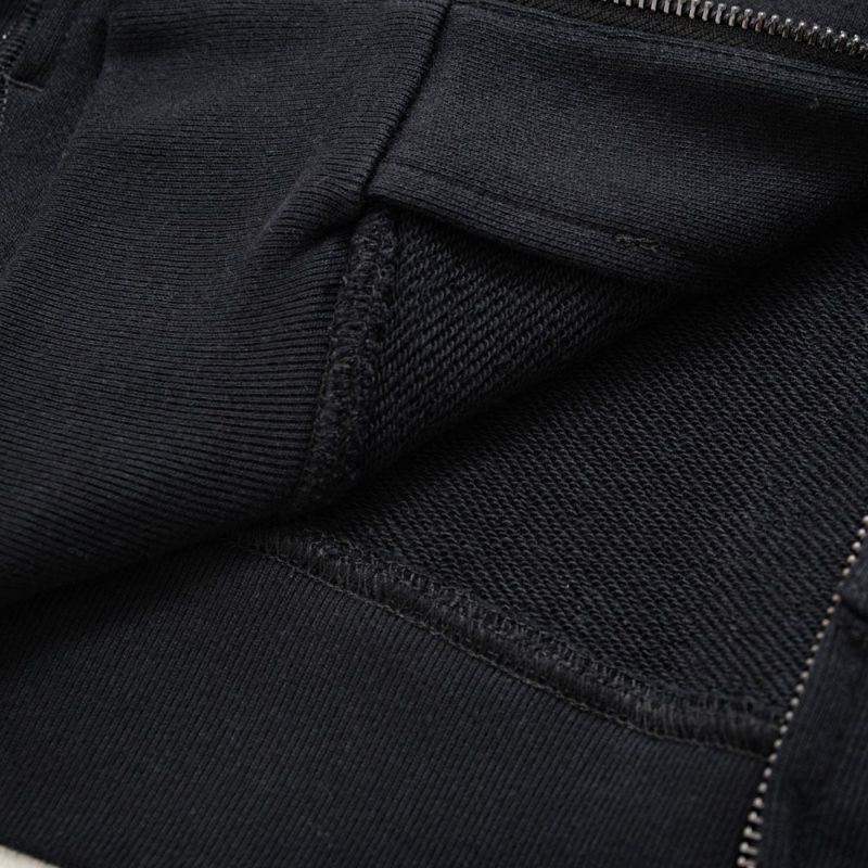 肩から袖口まで大胆にブランドロゴを配置したジップフーディー。