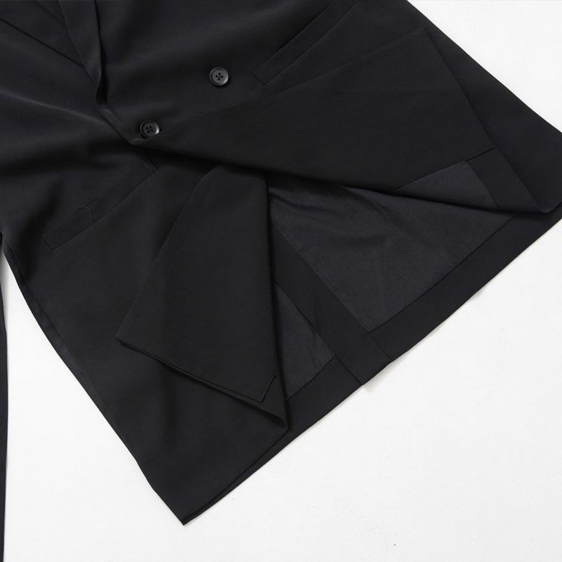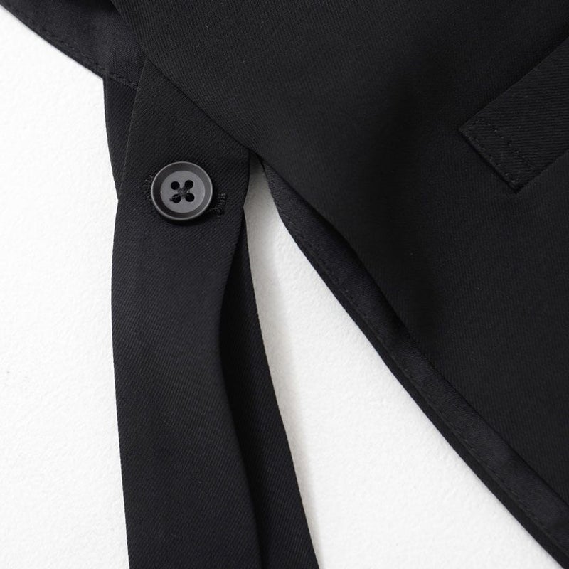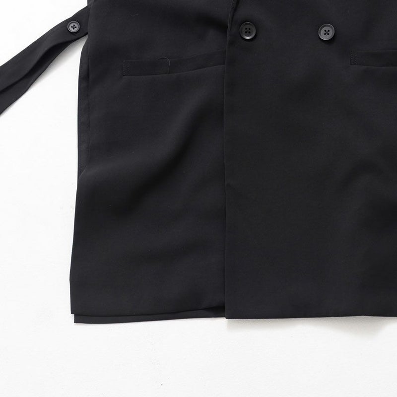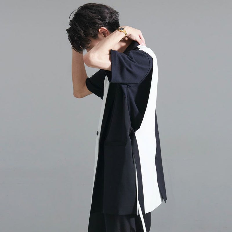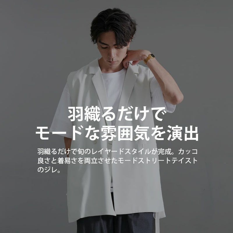 長い着丈とダブルフロントがジャケット的な雰囲気を感じさせるデザインです。