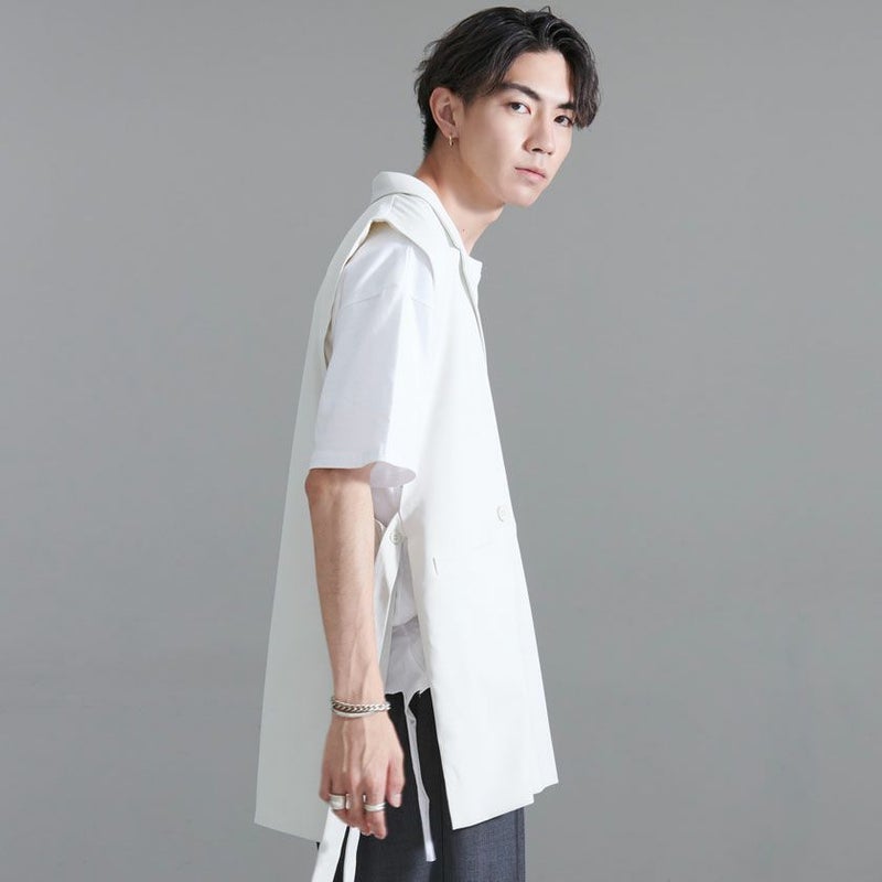 大きく開いた腕周りは、近年のオーバーサイズなインナーもスマートに着こなすことができるデザインで、風通しも良いので涼しく着られます。
