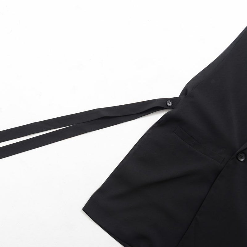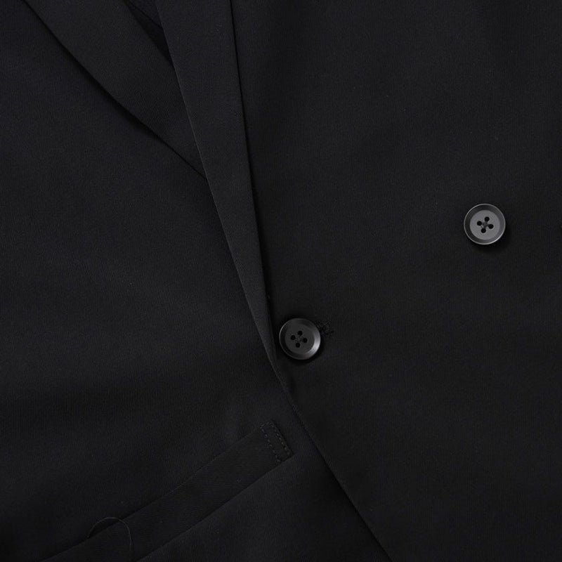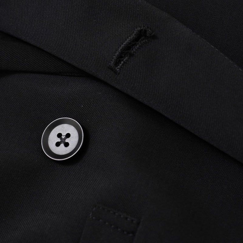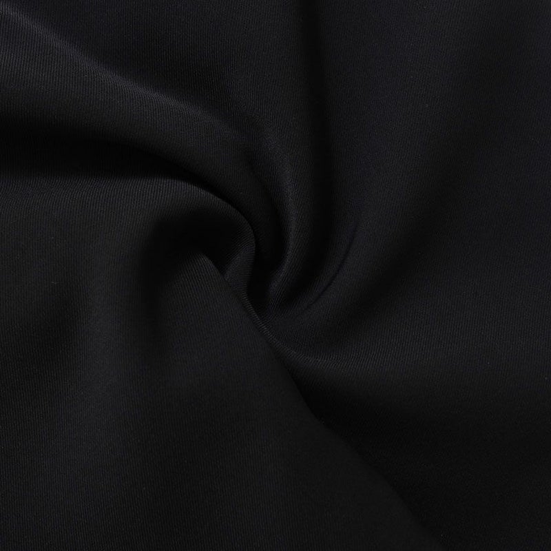 ポリエステル素材を使用することで、表面のエレガントさを演出し、同時に軽さやシワになりにくい機能性も実現しています。