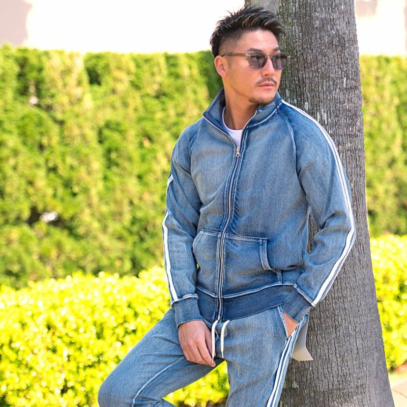 大人な雰囲気を演出するデニムのヴィンテージ感が新しい、デニム風カット(スウェット)生地を使用したジャケット。