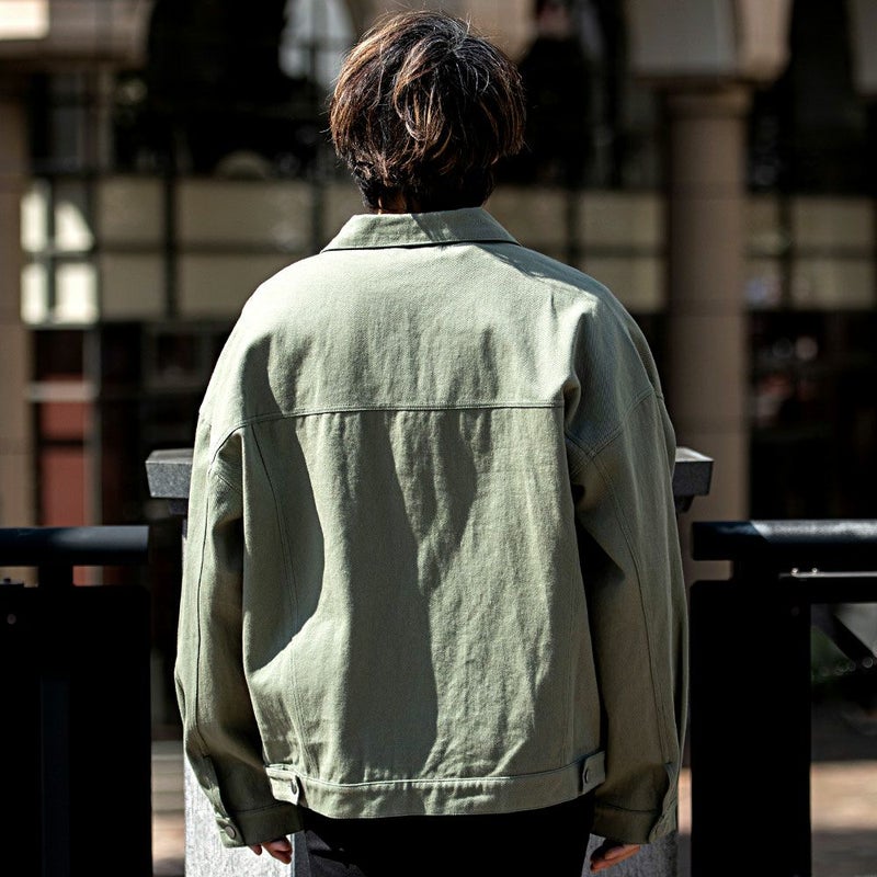 全体をゆったりとしたオーバーサイズに仕立てることで、インナーにスウェットやパーカーを合わせてもバランスよくまとまるデザイン。