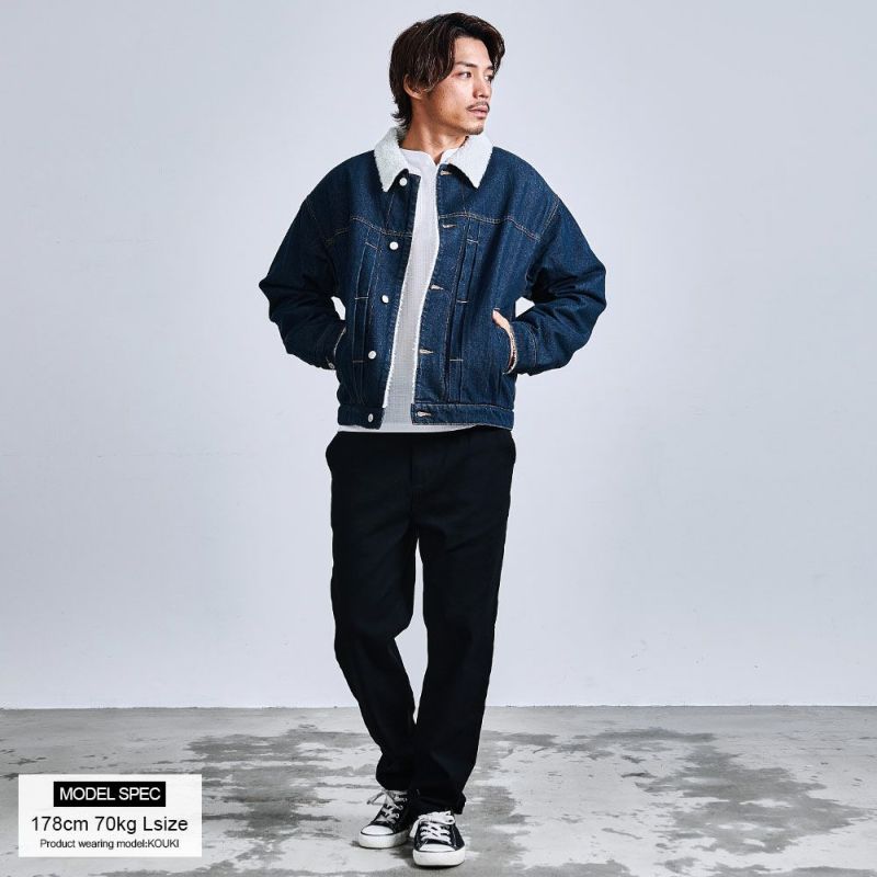 デニムパンツと合わせてセットアップ風にまとめるのはもちろん、チノパンやスラックス、カーゴパンツとの組み合わせで印象を自在にチェンジできます。