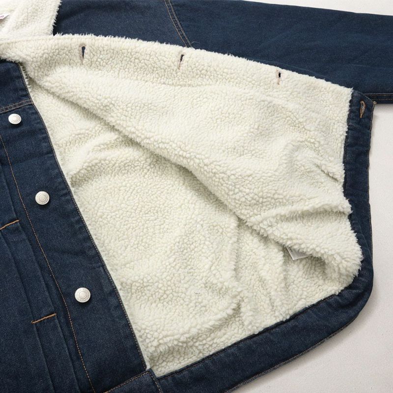 デニム特有の無骨さにボアの柔らかさが絶妙にマッチし、カジュアルながらも上品な印象に仕上がっています。