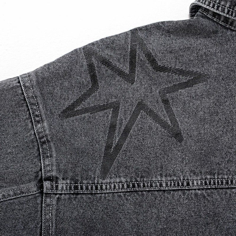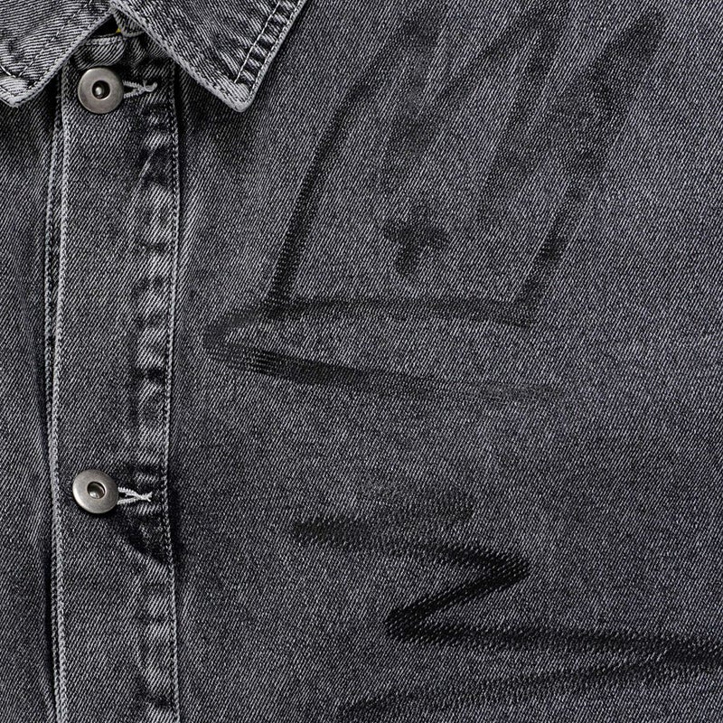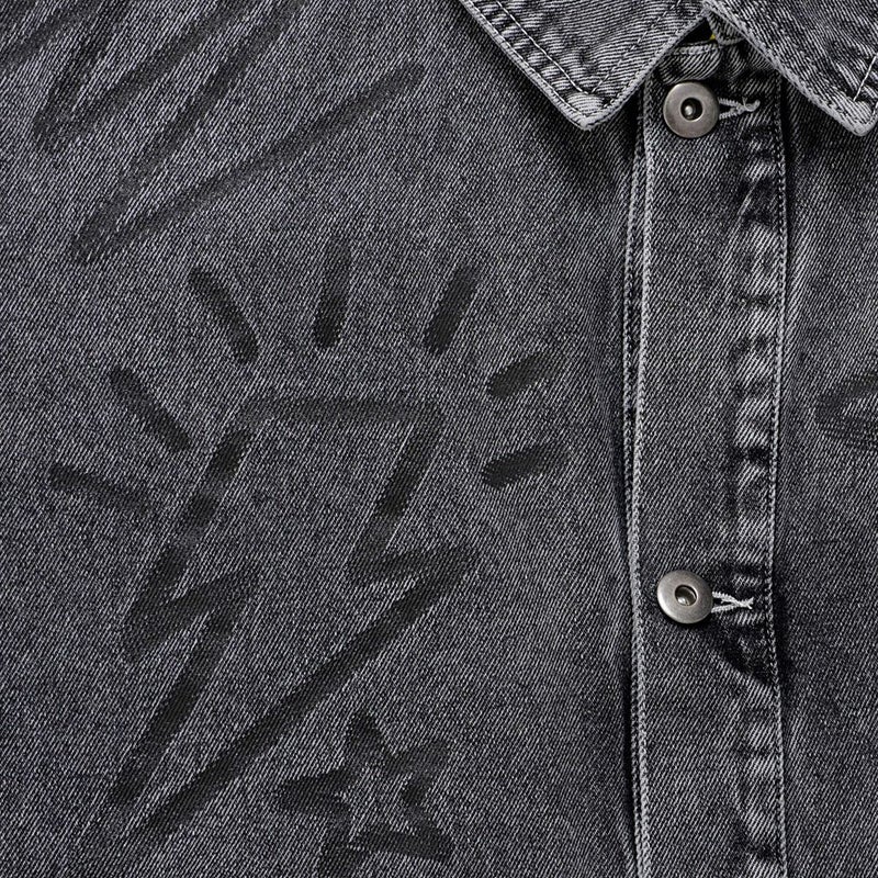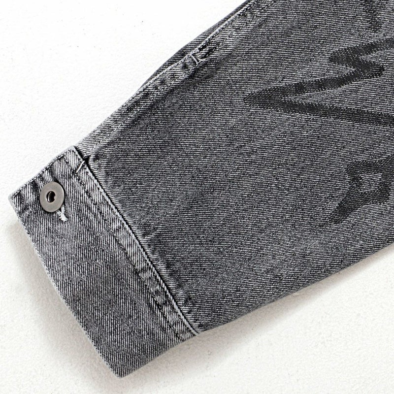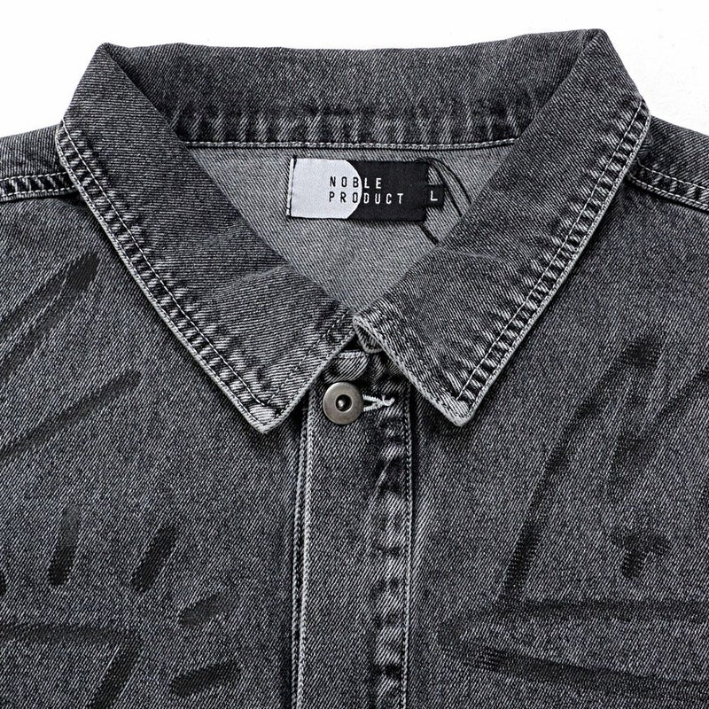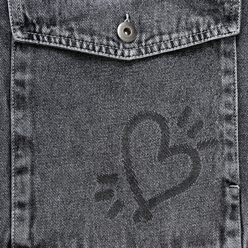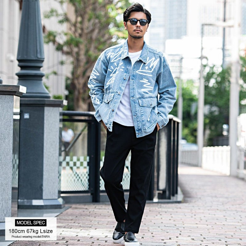 ランダムに描かれたラクガキのようなPOPなプリントが目を惹くデニムジャケット。