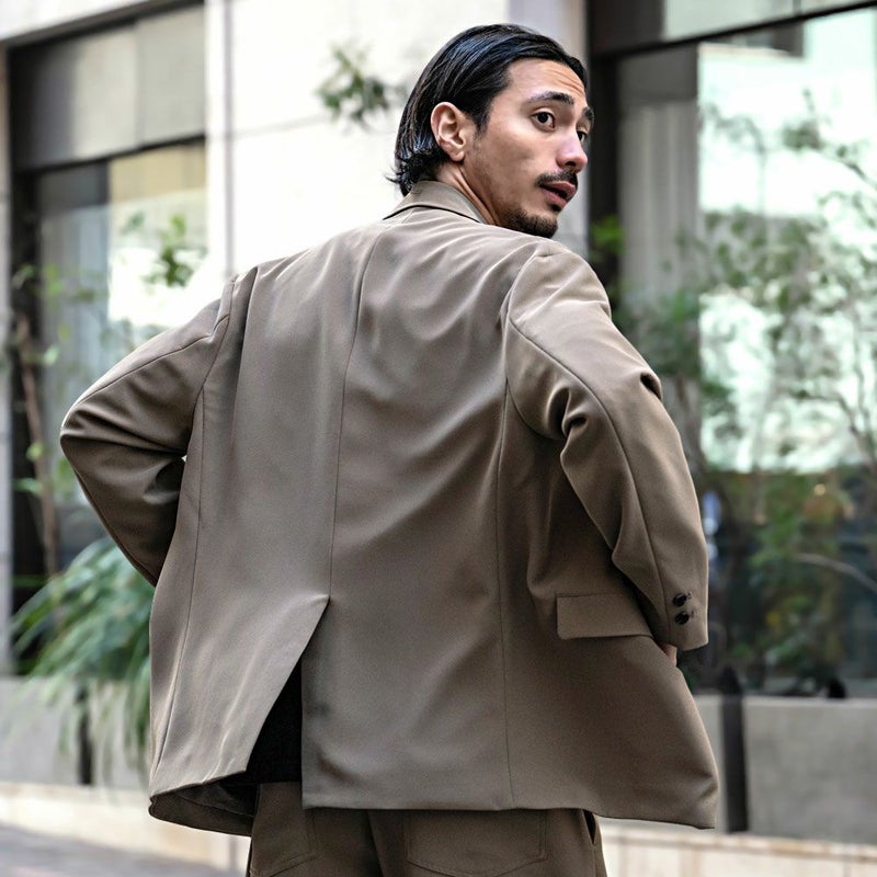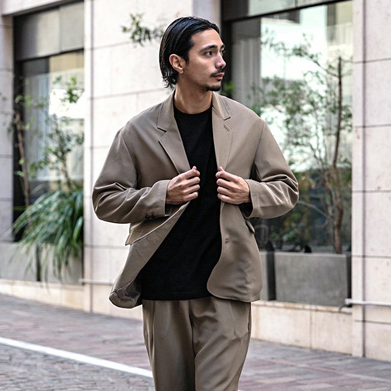 クリーンに見えるよう胸ポケットを無くし、ラペルを細長く見えるよう設計したリラックスジャケットです。