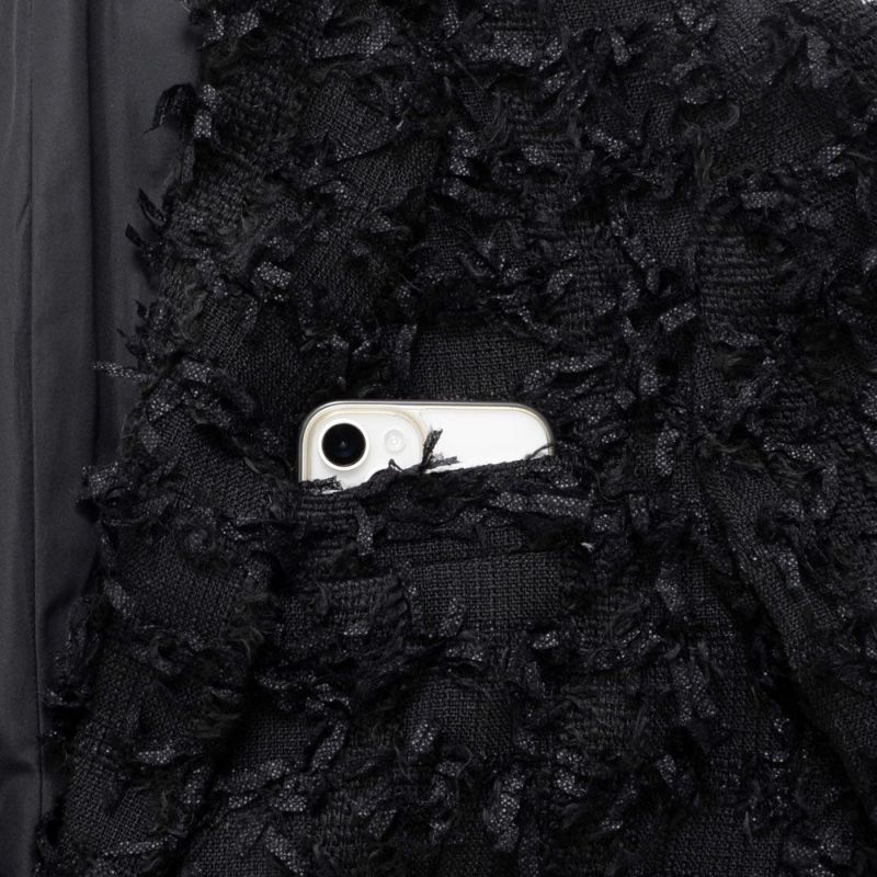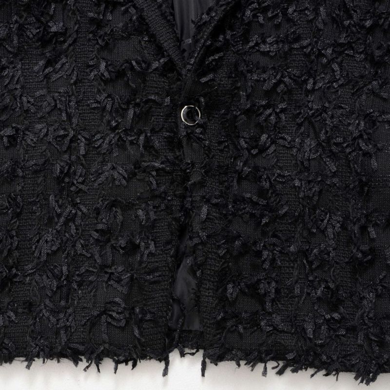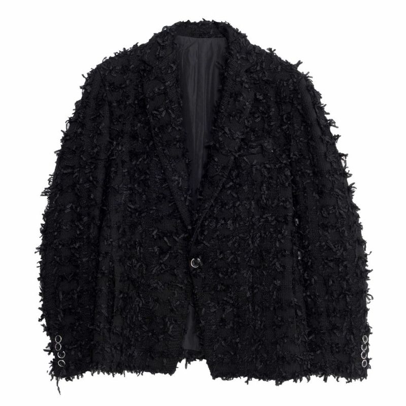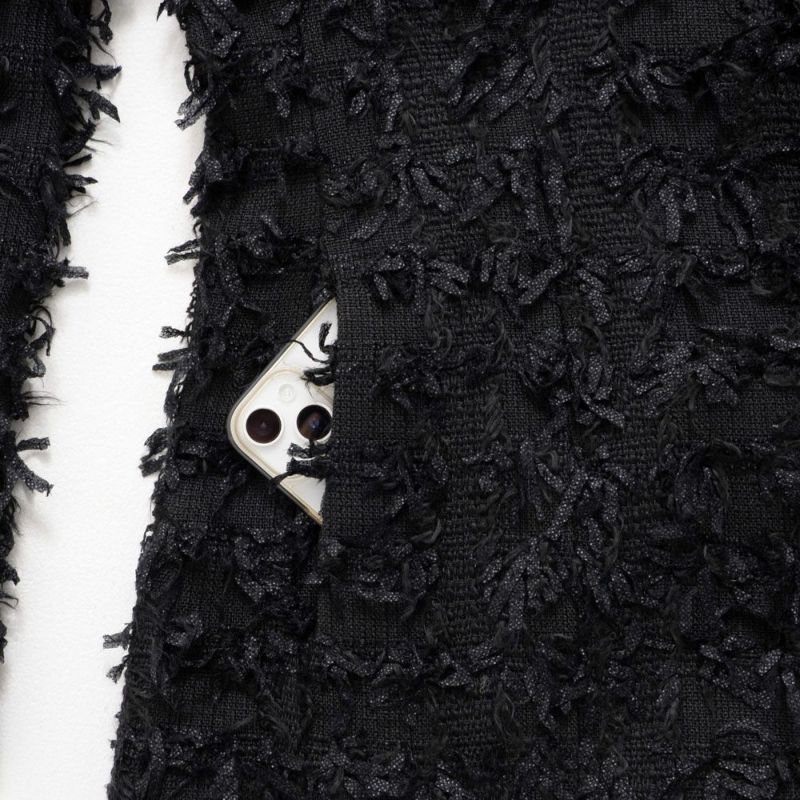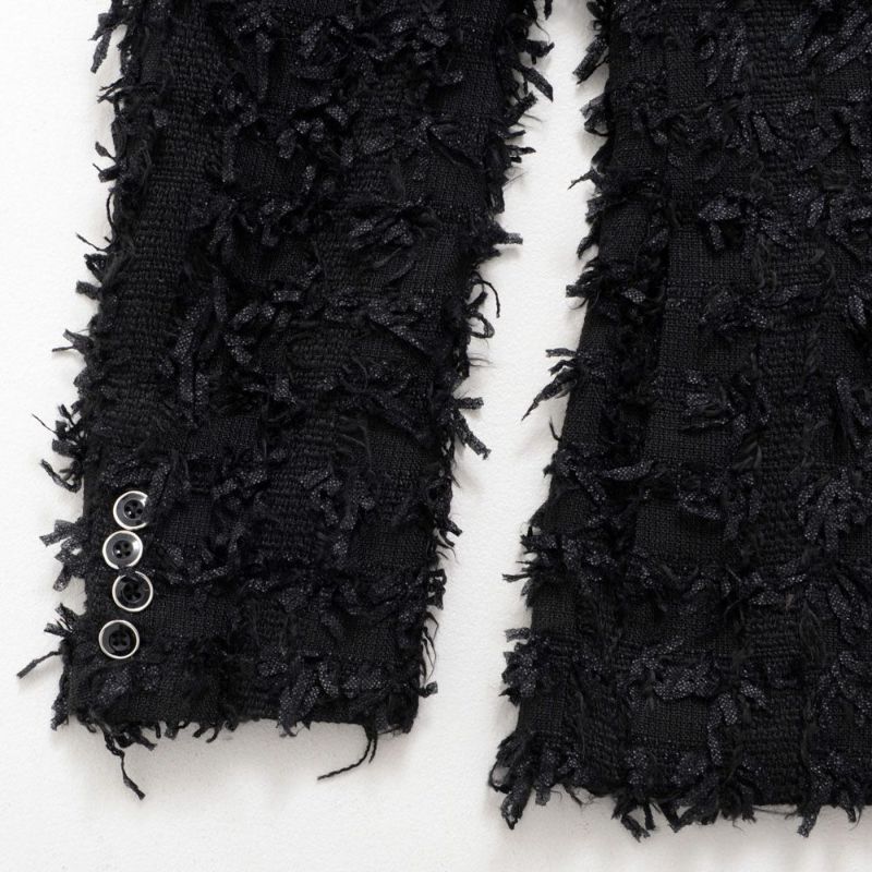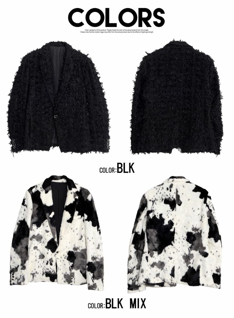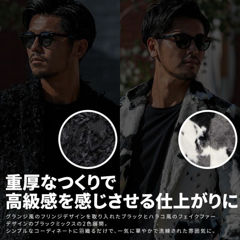 グランジ風のフリンジデザインを取り入れたブラックと、ハラコ風フェイクファーを使用したブラックミックスの2色展開。