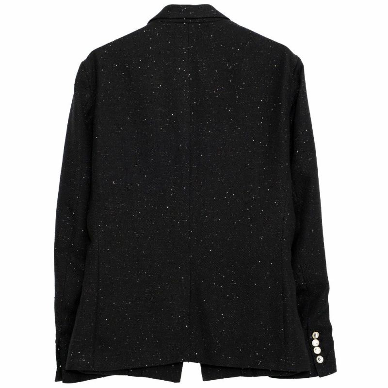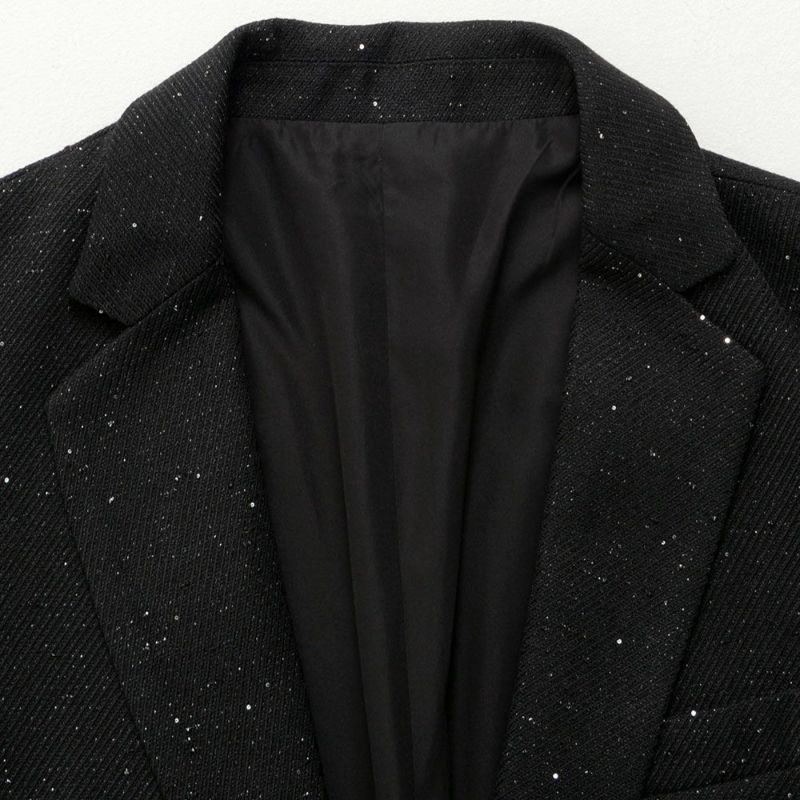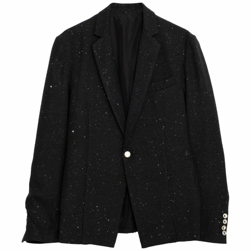 生地全体にスパンコールのような繊細な煌めきを散りばめた、ラグジュアリーな1ボタンテーラードジャケット。