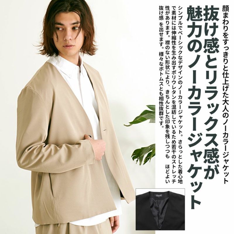 シンプルでかっこいいテーラードジャケット。上品な印象を与える、ビジネスにも休日にも最適。 【SALE/セール】CavariA(キャバリア)ノーカラージャケット/全2色