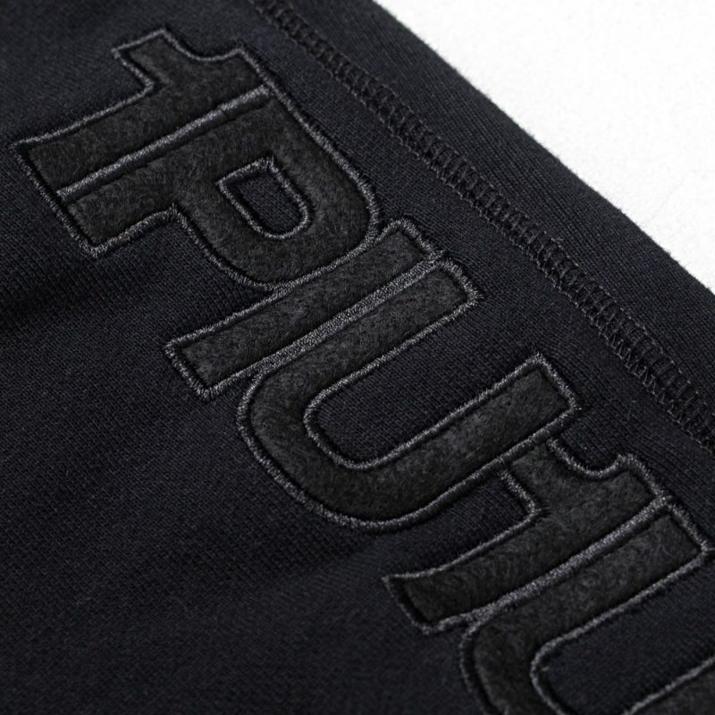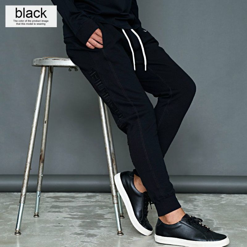 サイドに大胆にブランドロゴを配置したロングパンツ。