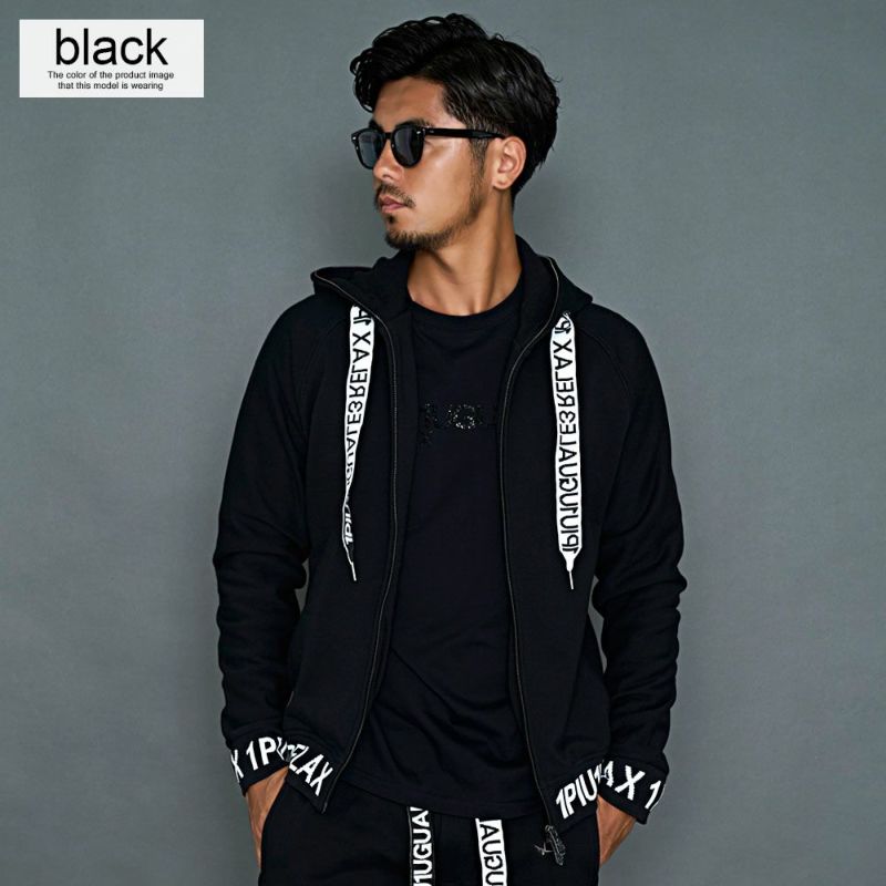 ブランドロゴを施した太めのスピンドルがキャッチーなジップアップパーカー。