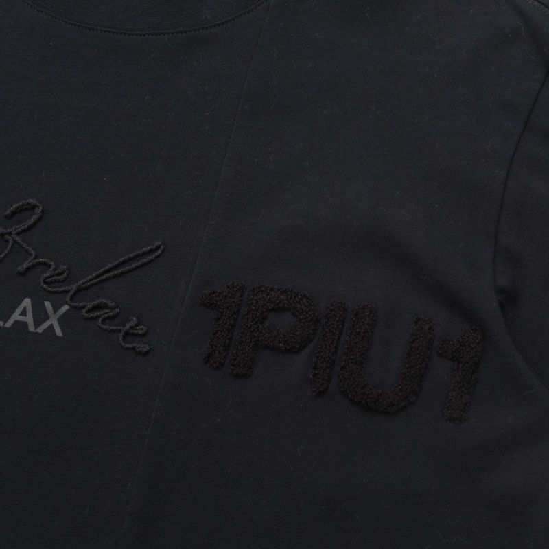 ロゴデザインが目を惹く1枚。左右で異なる加工を施したスウィッチングデザインが特徴で、右側にはふわふわのサガラ刺繍、左側には人気のロープ刺繍を採用し、立体感のある仕上がりに。 1PIU1UGUALE3 RELAX(ウノピゥウノウグァーレトレ リラックス)スウィッチングロゴロングTシャツ/全2色