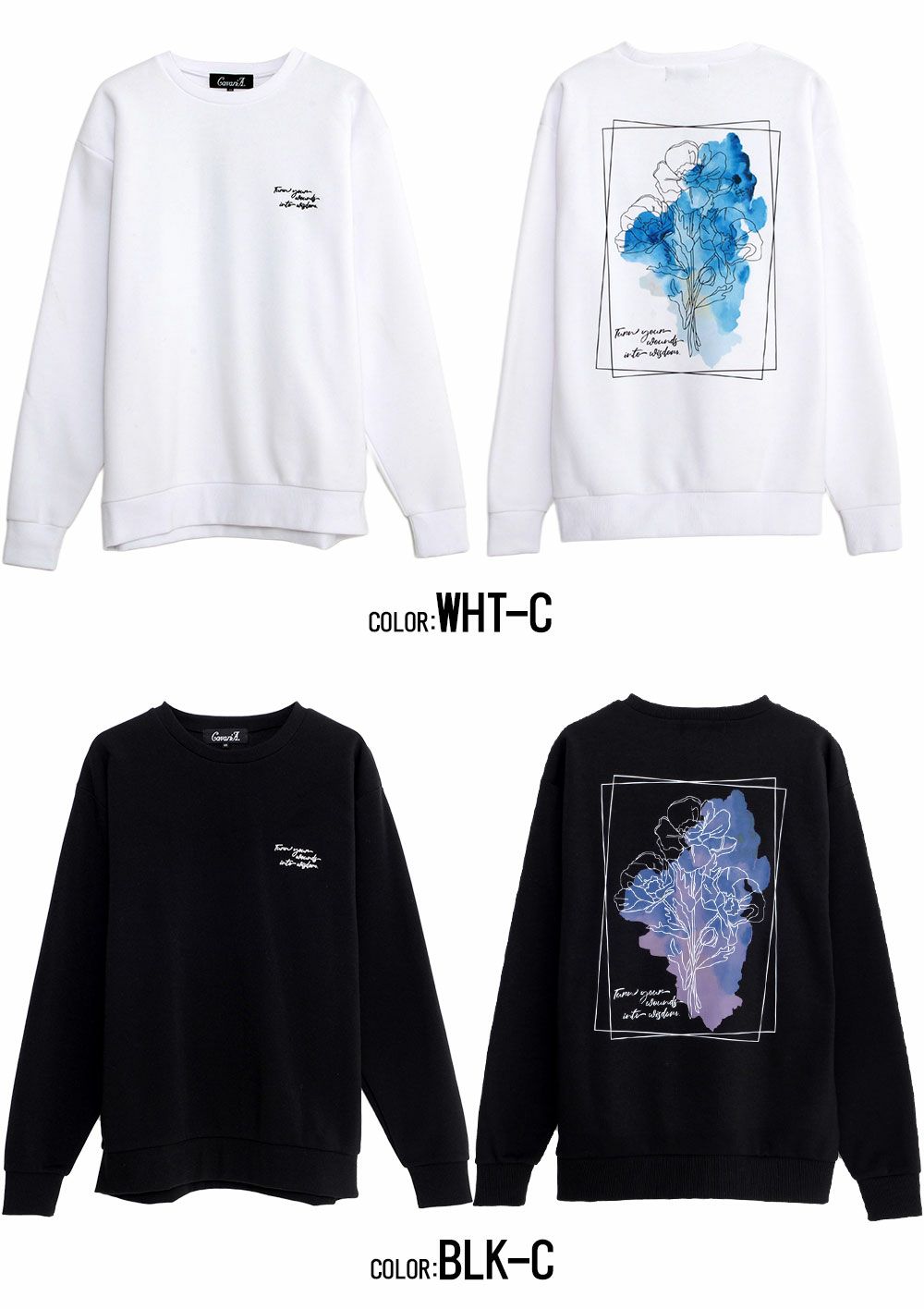 他の画像を見る フロントにはワンポイント刺繍・バックにはアートチックな花柄プリントが施され、シンプルなデザインながら存在感もある1枚に仕上がっています。 CavariA(キャバリア)花長袖トレーナー/全6色 販売価格 ¥ 4,980 税込 カートに入れる お気に入りに登録する