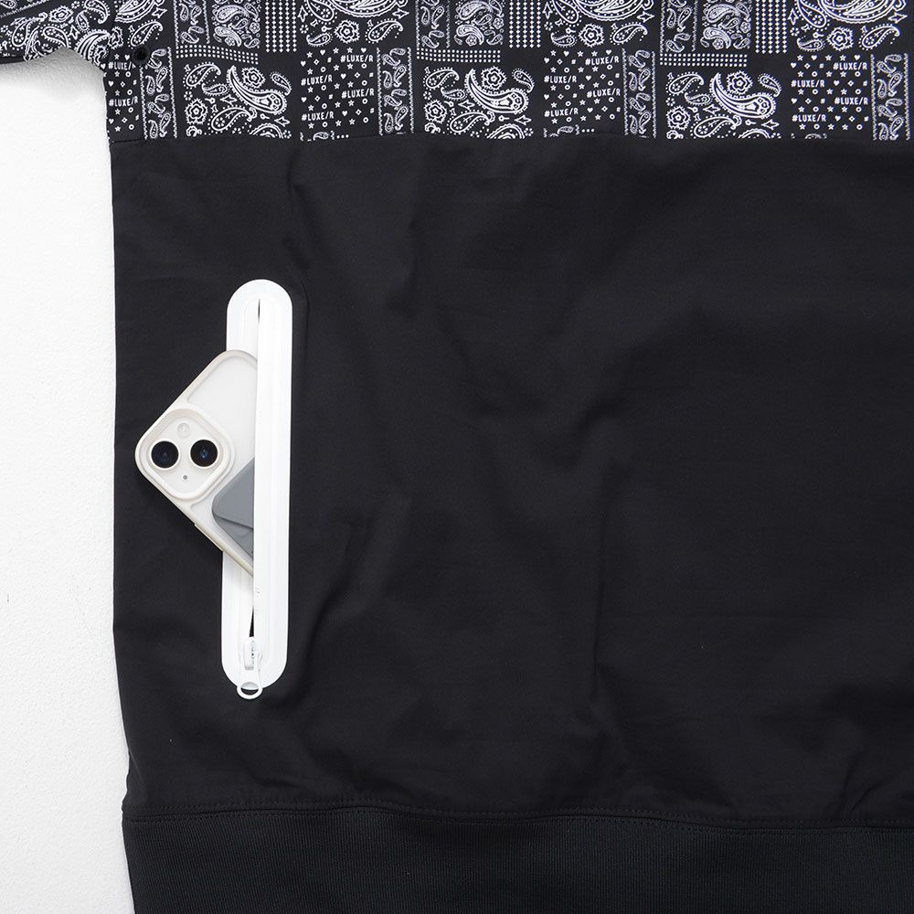 他の画像を見る 切り替えデザインや止水ジップを施し、360度どこから見てもスタイリッシュなデザイン。ナイロンと綿を織り交ぜた生地なので、通気性もよく撥水機能も兼ね備えた1着。 LUXE/R(ラグジュ)ペイズリー切り替えストレッチ布帛長袖トレーナー/全2色 販売価格 ¥ 10,780 税込 カートに入れる お気に入りに登録する