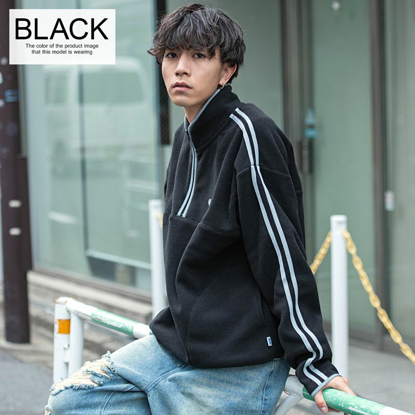 程よい厚みで弾力があり、フリースで暖かいフリース素材を使用したハーフジップトレーナー。