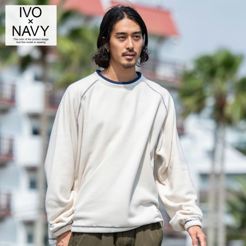 古着テイスト感もあるデザインが特徴のクルーネックのラグランフリース。