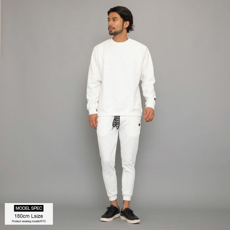 ※こちらの商品はトレーナーのみの販売となります。別売りのパンツと組み合わせることで、セットアップとしてもお使い頂けます。 LUXE/R(ラグジュ)ふくれジャガードクルーネック長袖 トレーナー/全2色