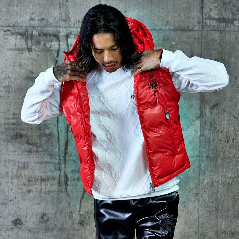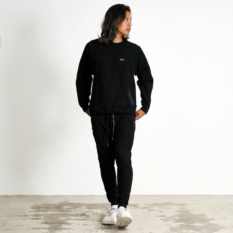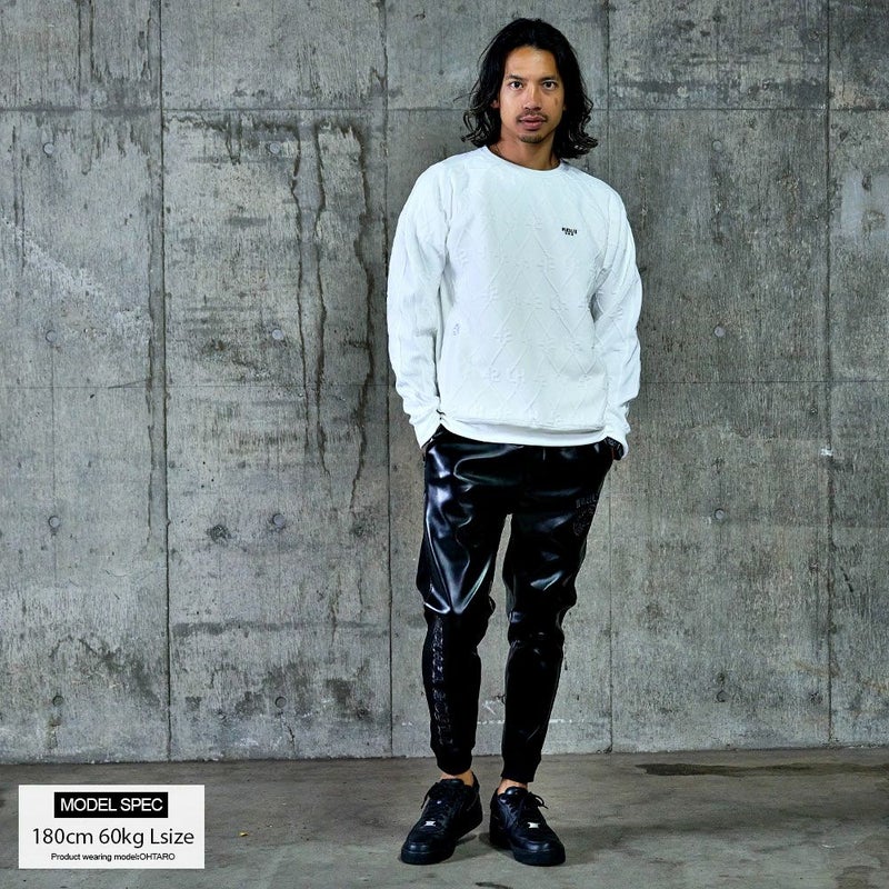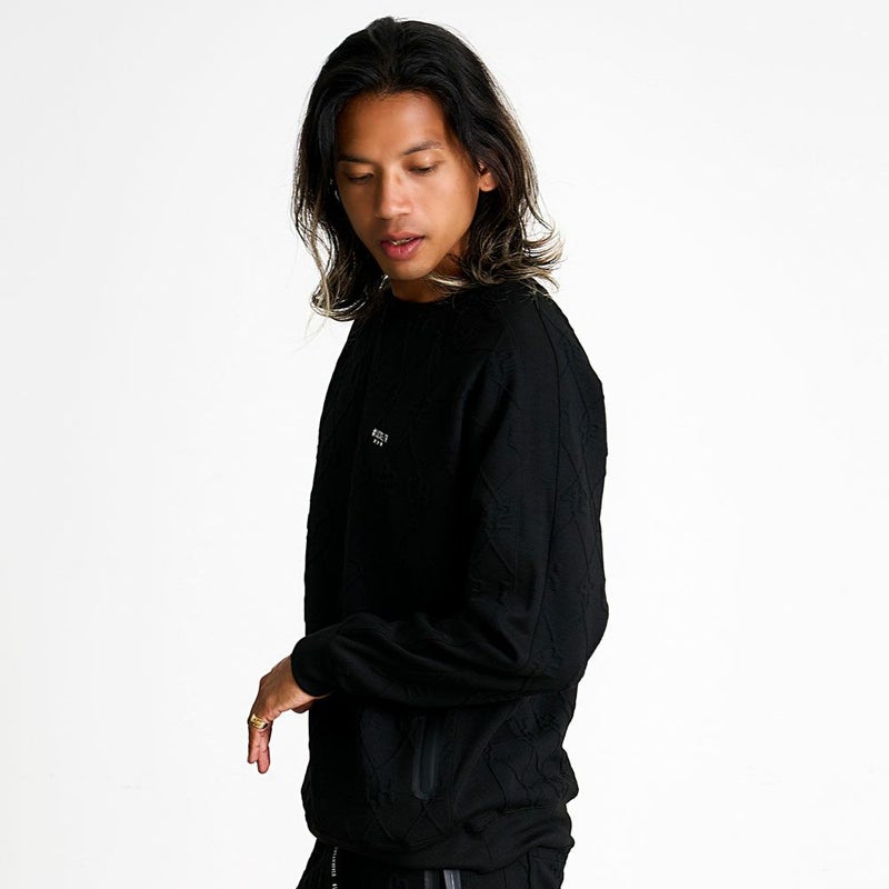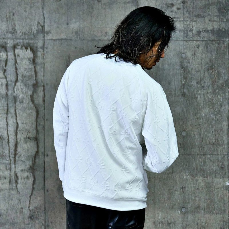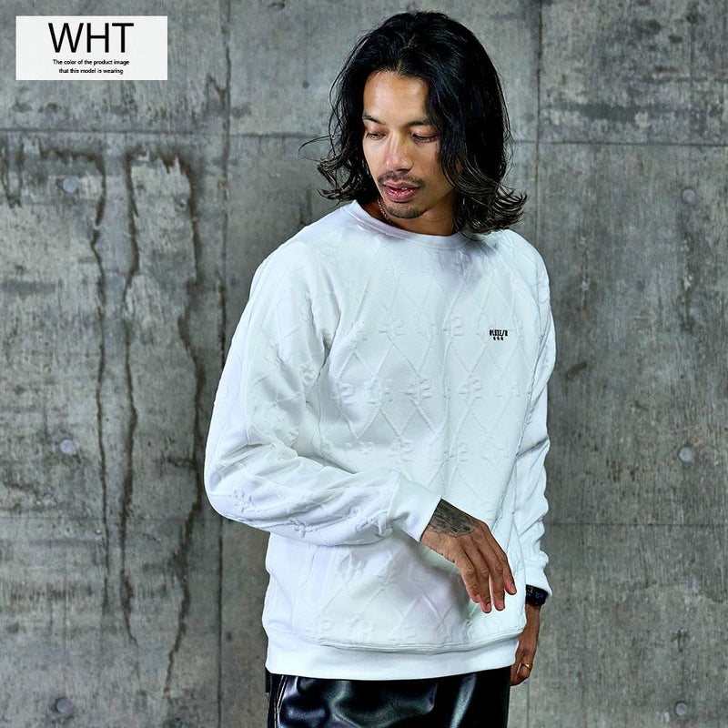 立体感のあるふくれジャガード素材を使用した、存在感抜群のトレーナー。