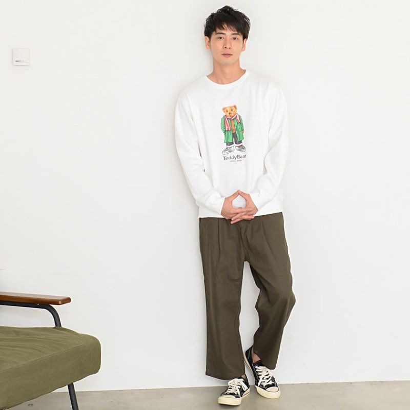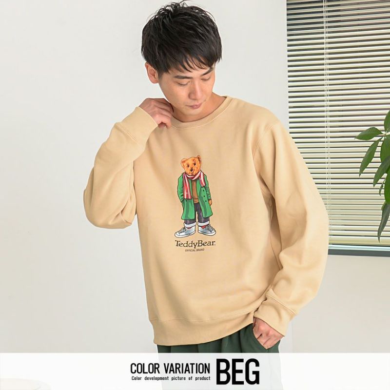 リラックスしたい日にぴったりのトレーナー・スウェット。心地よさとスタイルを両立。 【SALE/セール】TeddyBear(テディベア)ロゴプリントクルーネック長袖裏起毛スウェット/全3色