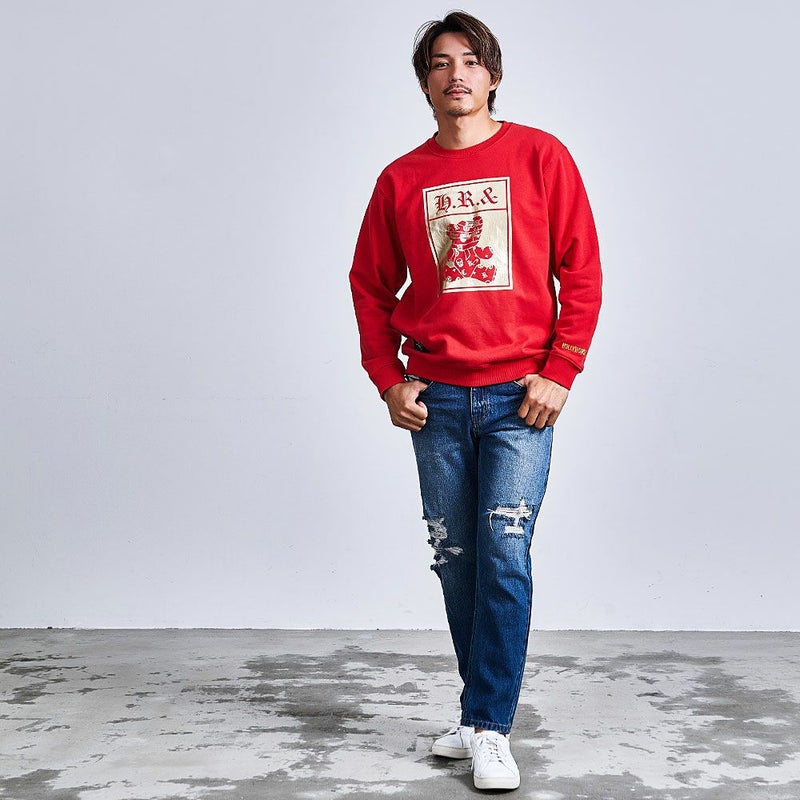 フロントにデザインされたゴールド箔のパンクベアが存在感抜群のトレーナー。