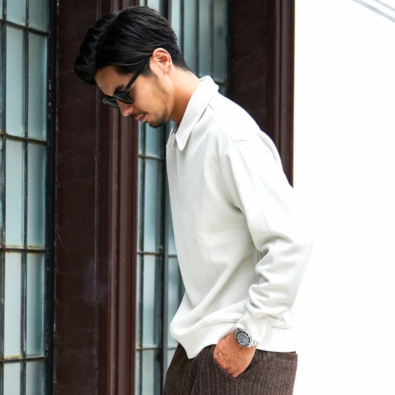 クラシックなハーフジップデザインをベースに、現代的なエッセンスを加えた一枚。
