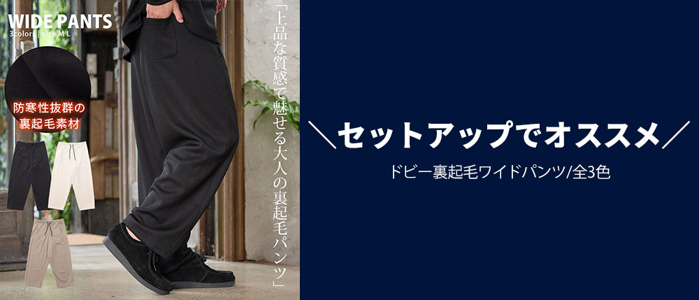 同素材のドビー裏起毛ワイドパンツとのセットアップも可能。