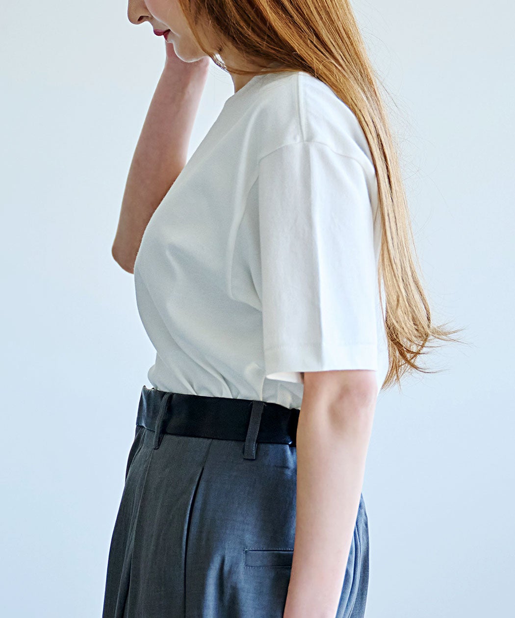 他の画像を見る 着用した瞬間からひんやりと冷たい接触冷感機能。吸水速乾、ストレッチ性に優れたソフトな肌触りのスムース素材を採用しました。 LUXE/R(ラグジュ)N/PUスムースモックネック半袖Tシャツ/全3色 販売価格 ¥ 7,590 税込 カートに入れる お気に入りに登録する