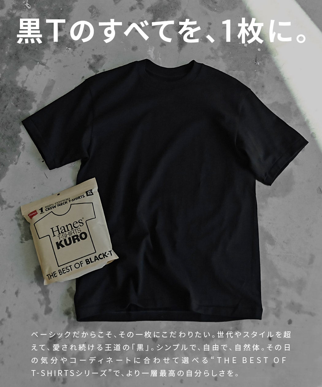 他の画像を見る 黒Tの完成形「Hanes KURO」独自製法によるこだわりの「先染めブラック」を採用。 Hanes(ヘインズ)1P Hanes T-SHIRTS KURO クルーネックTシャツ/全1色 販売価格 ¥ 3,520 税込 カートに入れる お気に入りに登録する
