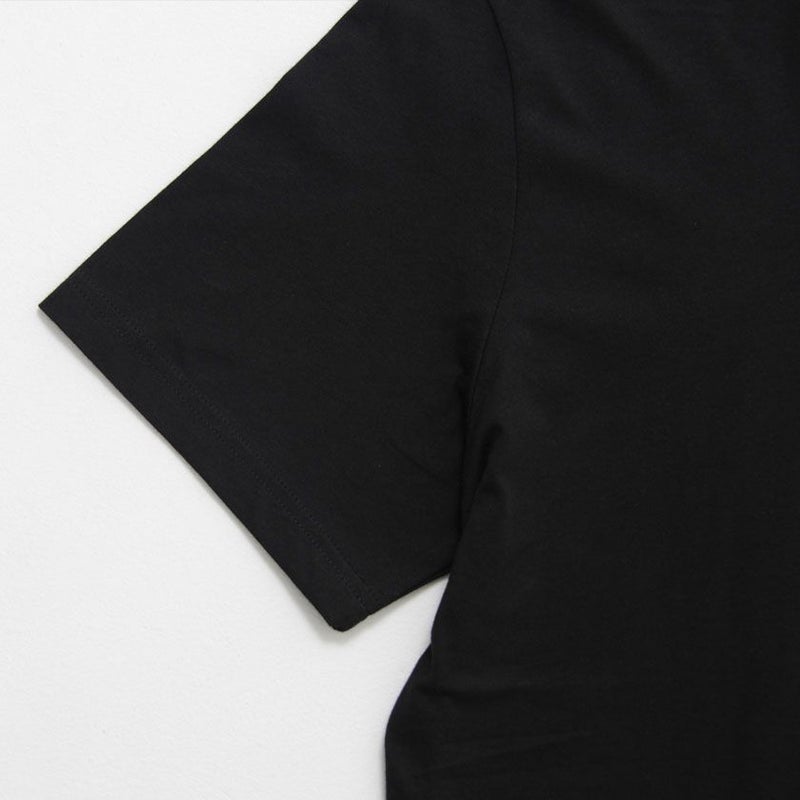 胸元にワンポイントでブランド刺繍を施した半袖Tシャツ。