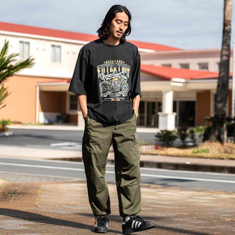 合わせるボトムはスラックスなどのキレイめはもちろん、デニムパンツやパラシュートパンツ、カーゴパンツなどのトレンドアイテムとも相性抜群です。