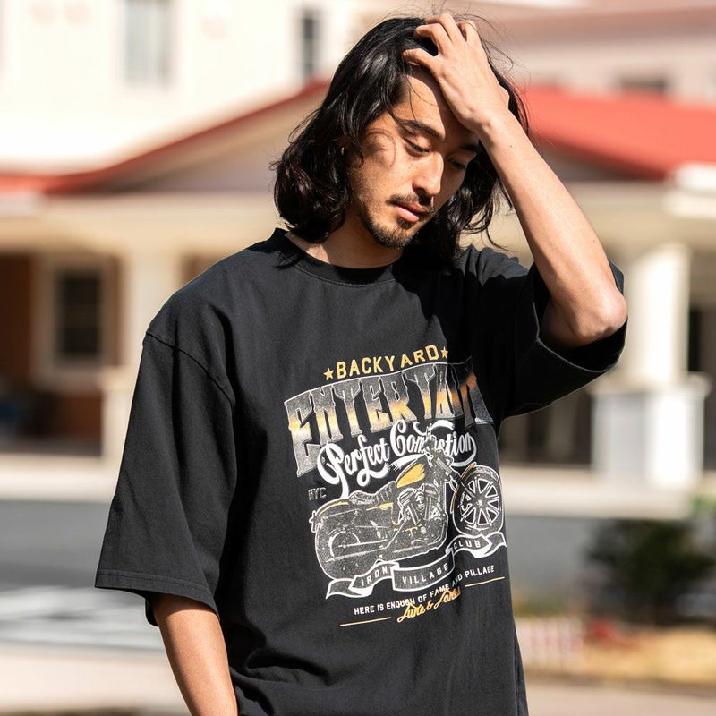 加工によりかすれたバイクプリントがフェード感のある本格的な古着のような風合いを再現してくれます。
