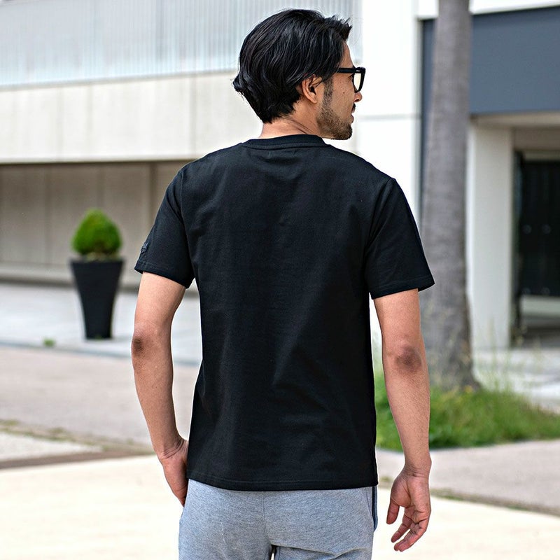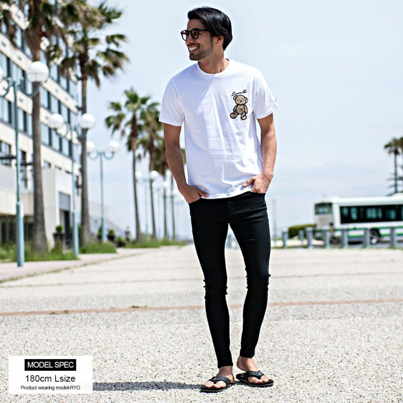 胸元にジャガード布帛素材のベアワッペンを施し、可愛さとハードさの両面を兼ね備えた半袖Tシャツ。