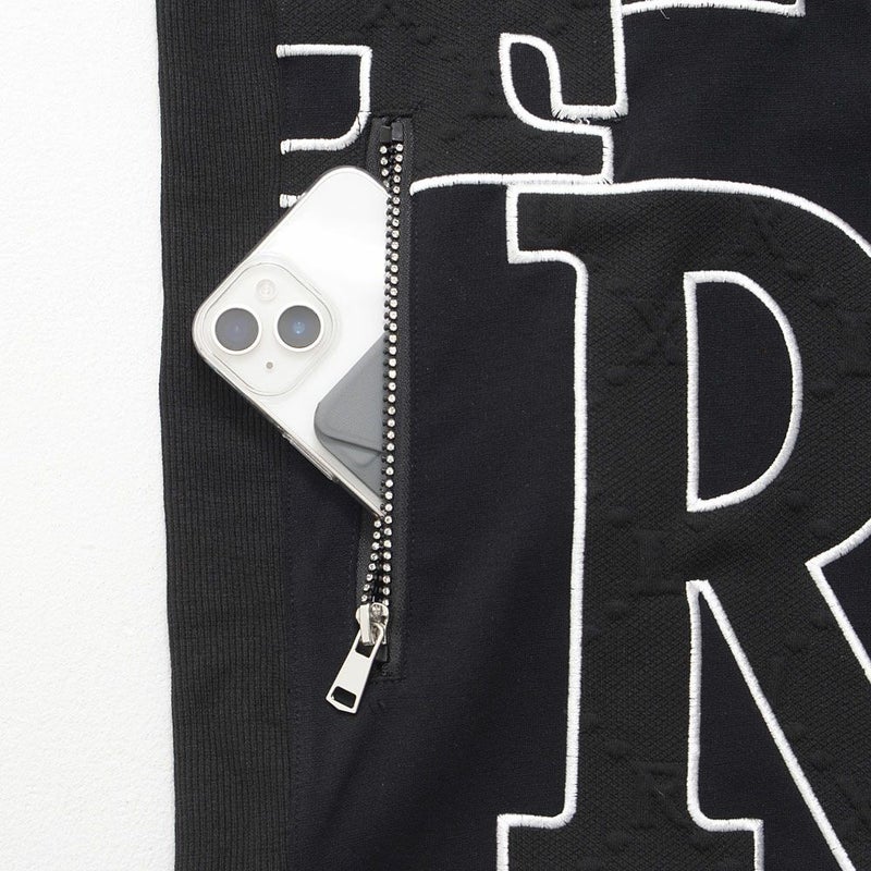 フロント両サイドポケットのチャック部分はラインストーン付きでラグジュアリー感をプラス。