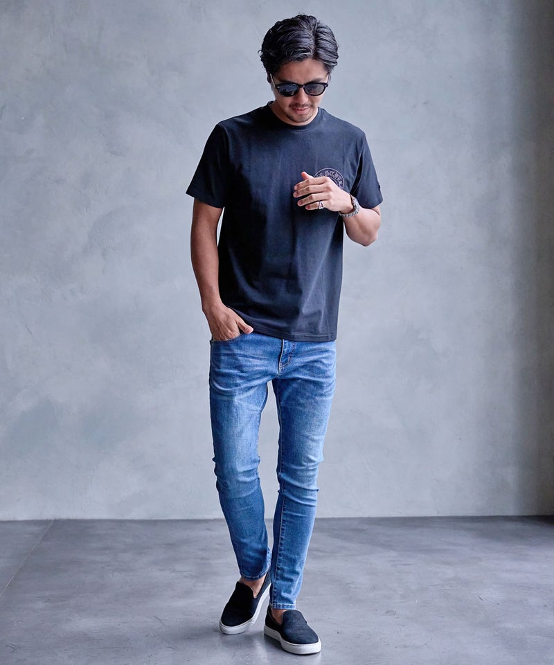 セットアップやデニム、プリント加工などのスタイリングを楽しむ。