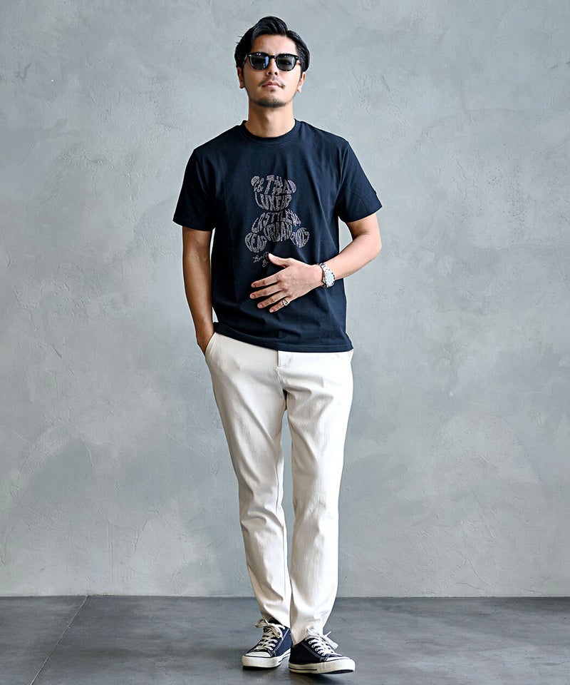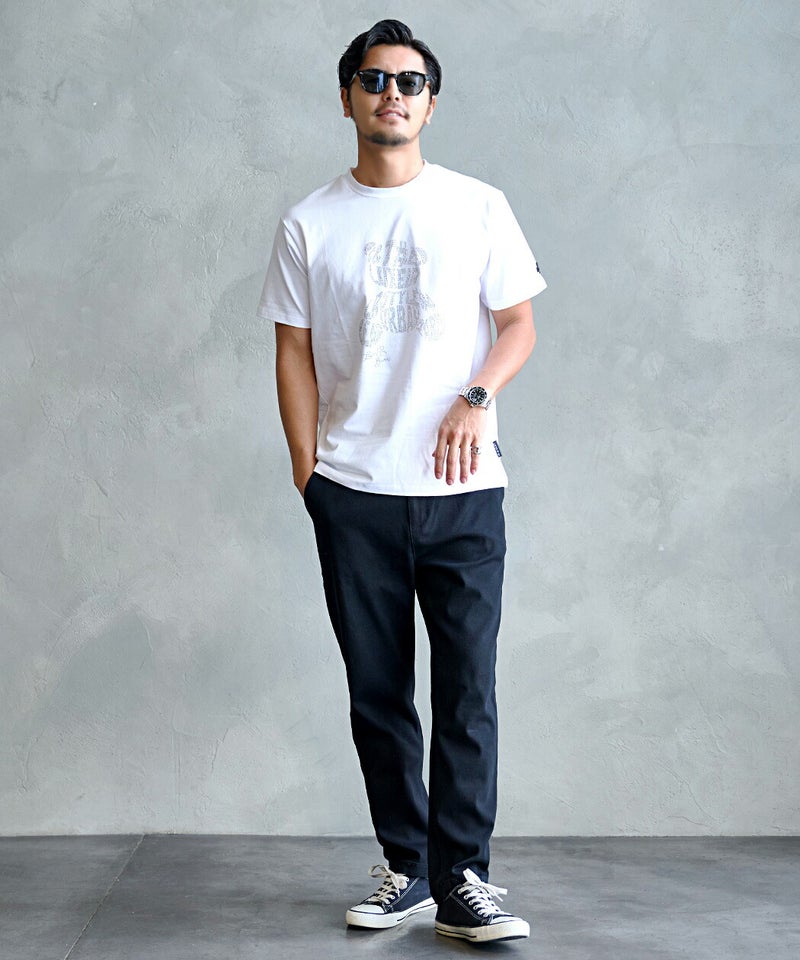 シンプルながらも存在感のあるベアデザインで、いつものスタイリングをワンランクアップさせてくれるTシャツです。